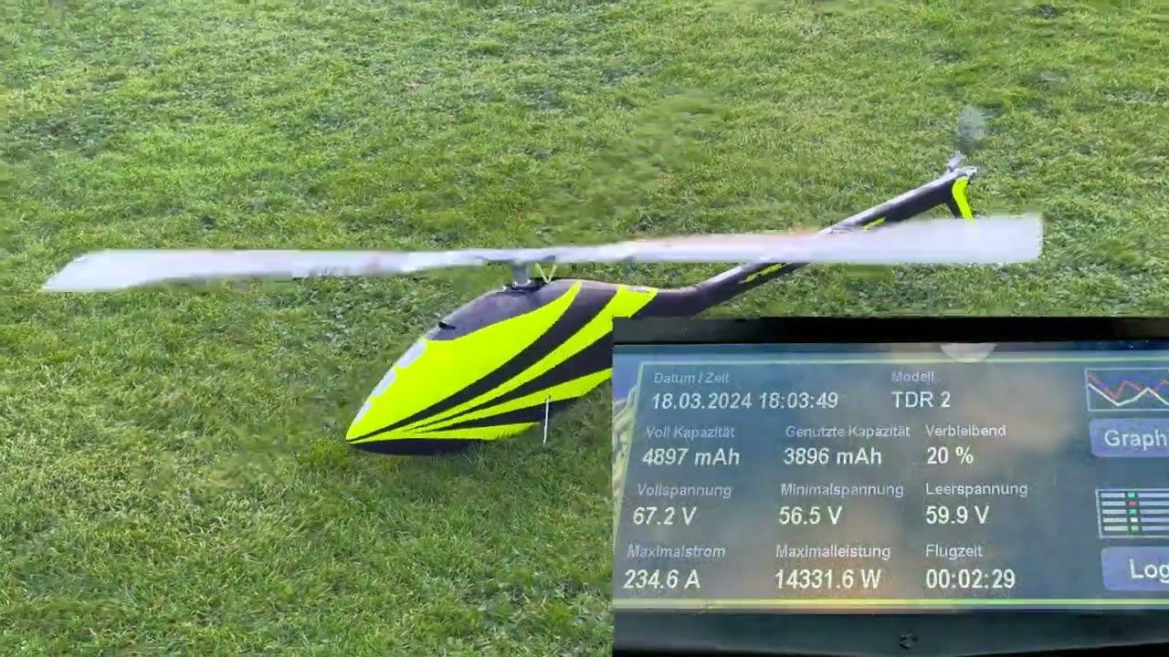 Habe mich auch mal an den niedrigen Drehzaheln probiert hier mit 1600 und 1400 rpm geflogen...macht an dem Dicken erst seitdem ich die SB 720 drauf habe wirklich Spaß.