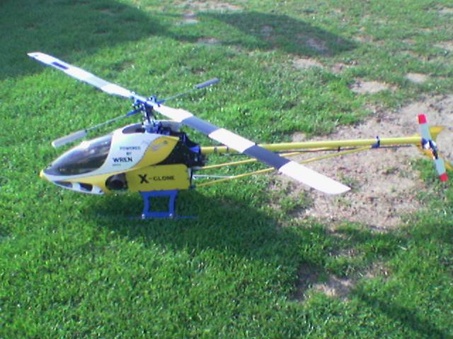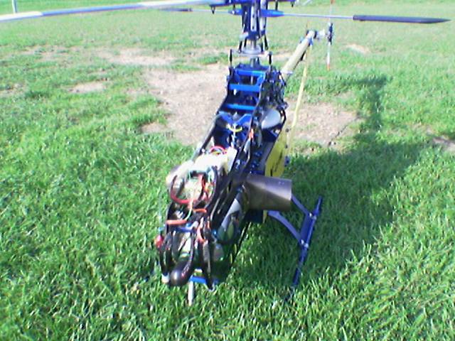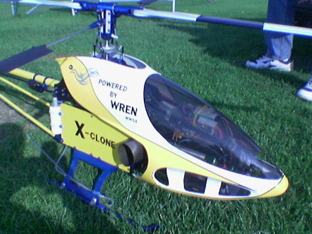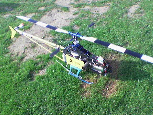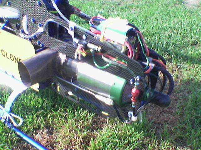 Der Heli ist dem Zyclone ziemlich aenlich ist aber keiner ,Seitenteile und Mechanik ist eigenbau . Hier werkelt eine Wren MW54 Turbine mit Interstage. fast 5,5 Kw leistung fuer 10 kg gesamtgewicht. Der fliegt sogar leichtes 3D damit.