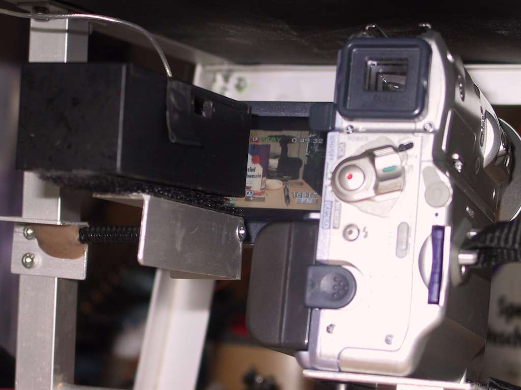 Von der Seite: Das Klett hatte ich ursprünglich benutzt, um den Monitor direkt an die Fernbedienung zu befestigen. Da war der Blickwinkel aber nicht so gut.