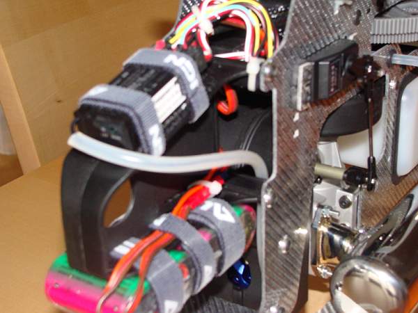 mit dem Regulator. Hab noch einen Schalter zwischen Akku und Empfänger vrerbaut, den man jetzt nicht sieht. Ist vorne rechts drinnen verschraut. Beim 3ten Bild kann man ihn erkennen. Schraubensicherunglack hab ich laut Anleitung verwendet. Loctite Kleber aufs Gewinde und dann reingeschraubt. Aber man sollte sowieso die "kritischen" Schrauben vor oder nach jedem Flug kontrollieren. Von daher bin ich etwas Vorsichtig. Kostete ja alles auch eine Kleinigkeit. )