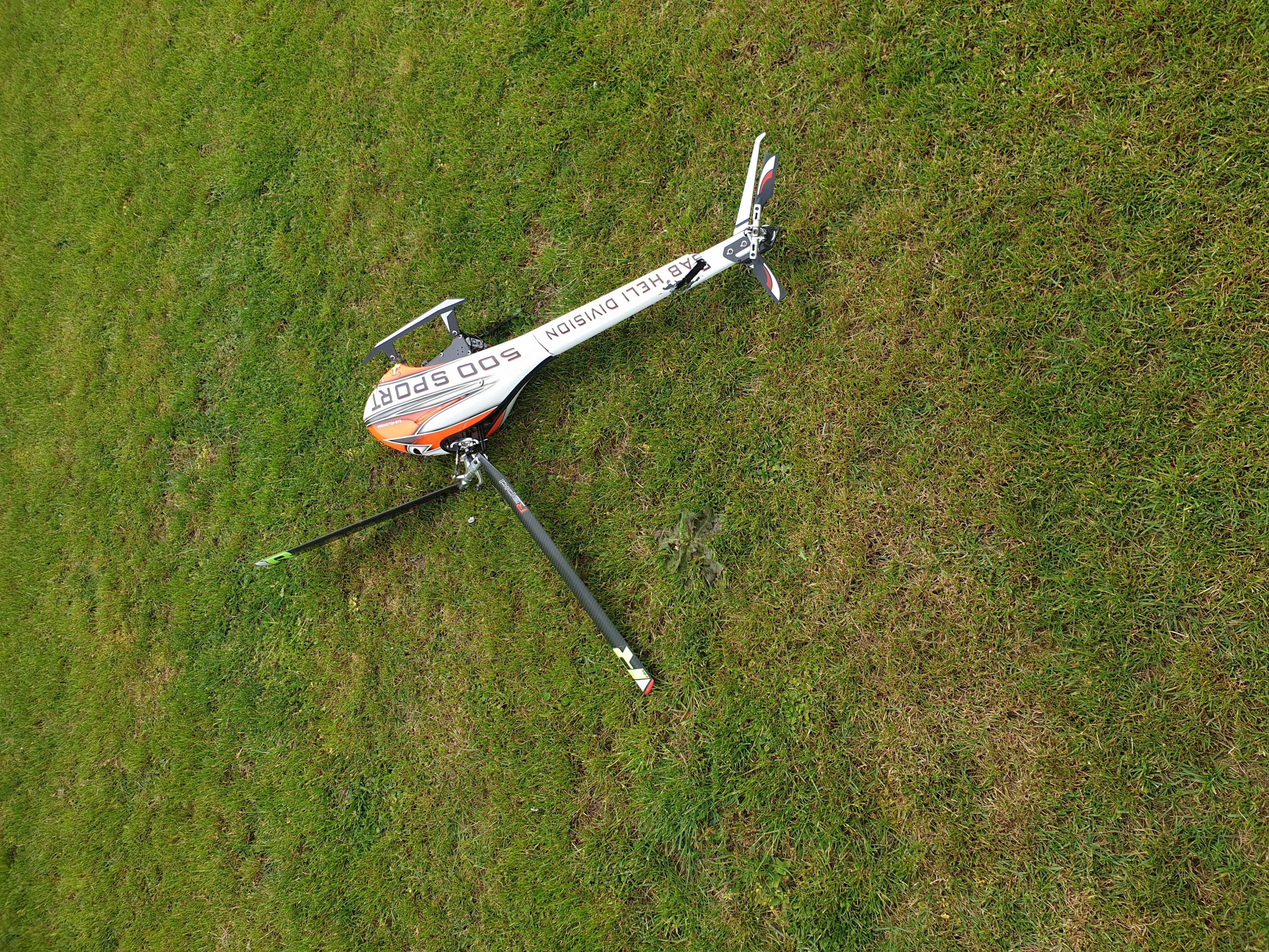 Der Heli sieht irgendwie frech und optimistisch aus, wie er so mit dem Schwanz nach oben dasteht....Zitat von Rotorix Beitrag anzeigen24 Flüge absturzfrei, dann Rückenflugtraining gestern Nachmittag, Nick falsch gedrückt: