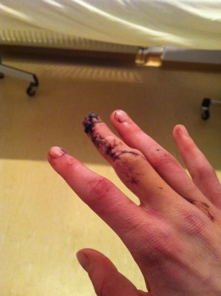 mCPX vs Unterarm, 2-3mm Einschnitt (schief, knapp unter der Haut). Bisschen Blut, nichts schlimmes.