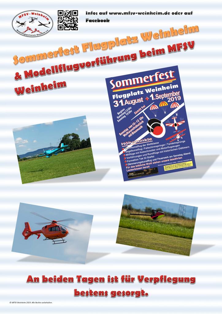 Dieses Jahr findet am 31.08 bis 01.09.2019 wieder das Sommerfest des LSV Weinheim auf dem Flugplatz Weinheim statt.