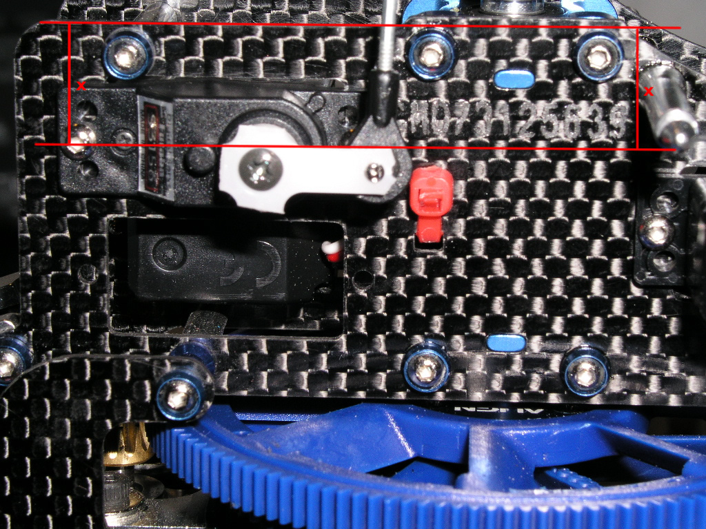 7) Mittels Sub-Trim in der Funke werden nun alle 3 TS Servos so genau wie möglich eingestellt. Hierfür verwenden wir die Kante der Servohörner und das Chassis als Bezugslinie, die Servohörner sind so parallel als möglich einzustellen. Für diesen Schritt muss man sich Zeit lassen. Auch mal ein zweites (drittes) Auge schauen lassen.