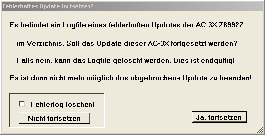 Jetzt habe ich noch diese Meldung bekommen, als ich es ein zweites mal versucht habe.