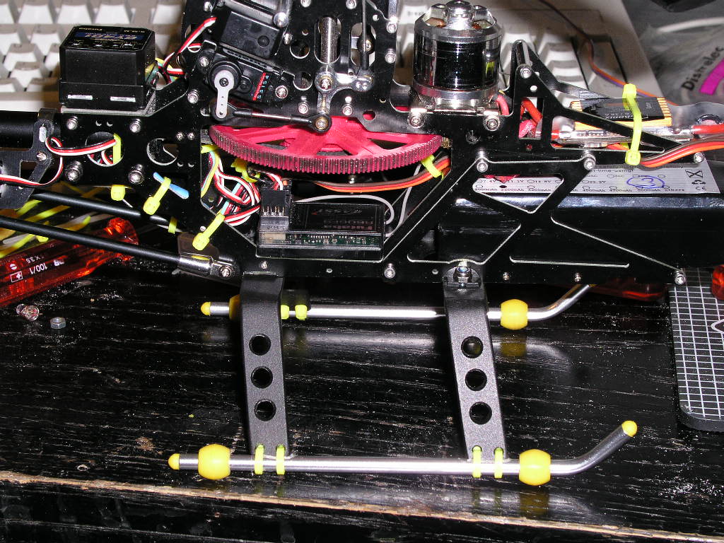 So, hier mal ein Update. Ich hab' mir ein neues Landegestellt aus Alu gebaut, bis die Ersatzteile eintreffen. Sieht nicht mal schlecht aus, ist nur 10g schwerer: