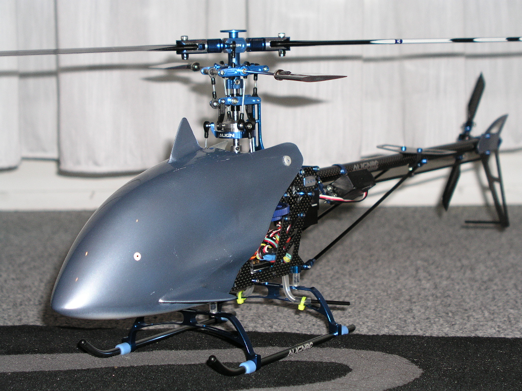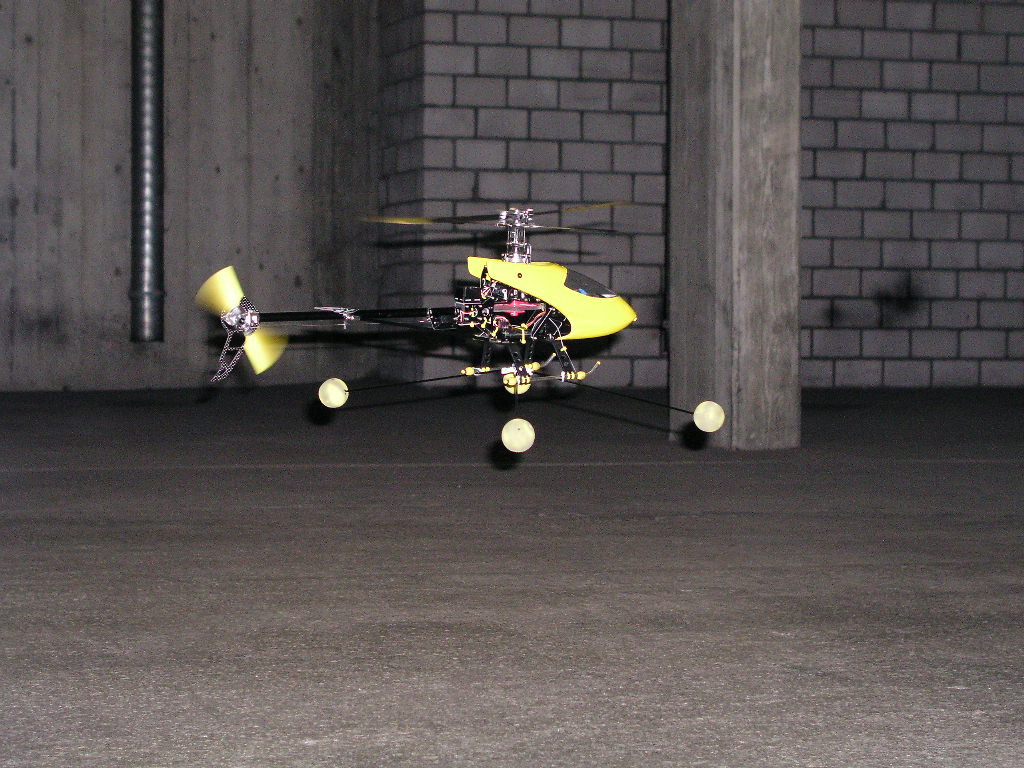 Wie ihr evt. wisst ist der Jazz Regler defekt, ich habe jetzt wieder den alten eingebaut und mit der Gaskurve etwas experimentiert. Erstmal auf 40% gestellt, der Heli hob' zwar ab aber war sehr träge und schwammig. Da hab' ich die Kurve auf 60% angehoben, der Heli war dann ultraflink und kaum zu beherrschen. Und dann, bei 50% - da konnte ich einfach schweben. War voll ein geiles Gefühl, könnt' ihr euch gar nicht vorstellen (oder doch?). Naja jedenfalls kann ich damit problemlos schweben, pics untenstehend. Ein Problem habe ich aber noch, wenn ich schwebe, dann sackt so alle 20sec die Drehzahl ein, es ist als hätte der Motor einen kurzen Aussetzter, so für ca. 0.5sec, gibt dann einen kurzen Ruck den man wieder korrigieren muss. Könnte das am schlechten Regler liegen oder liegt es eher daran, dass die Last zu gross ist, resp. zu wenig Gas?