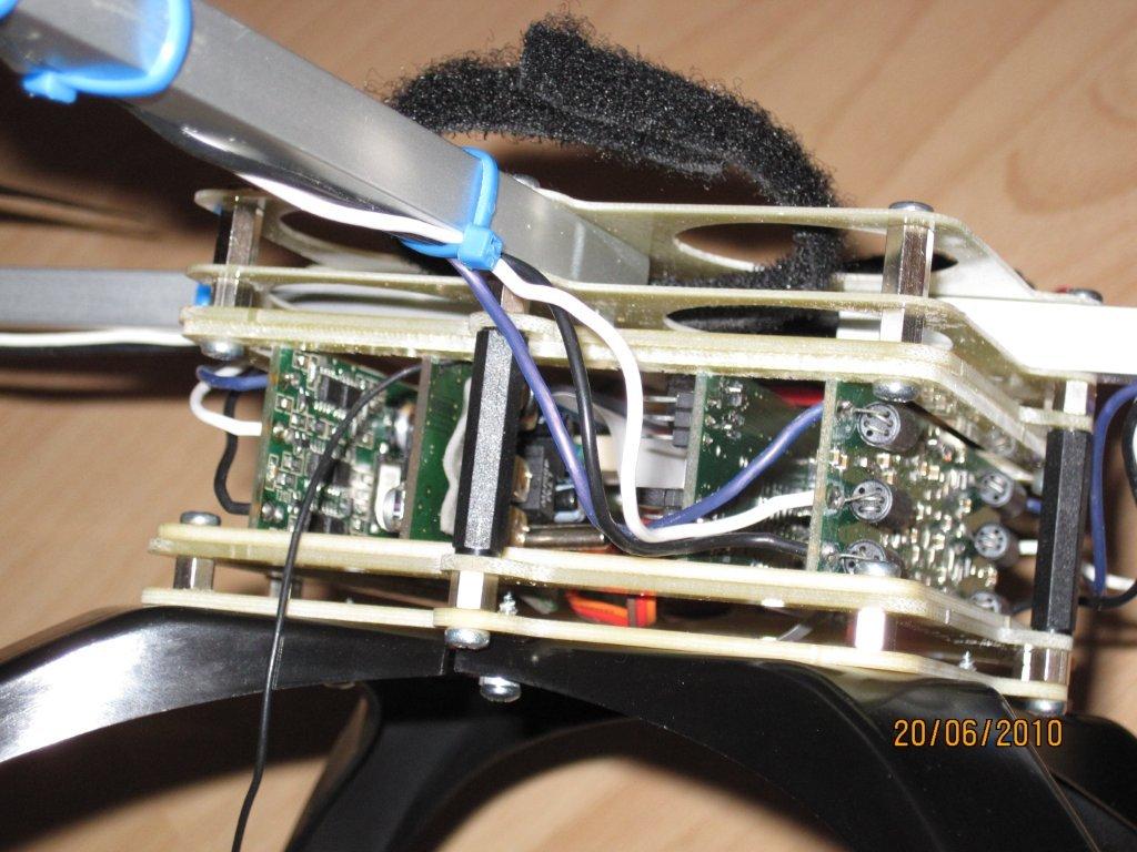 Die PLatte rechts oben soll das Akku tragen wenn unten etwas angebaut ist. Sonst kommt es unter das Landegestell.
