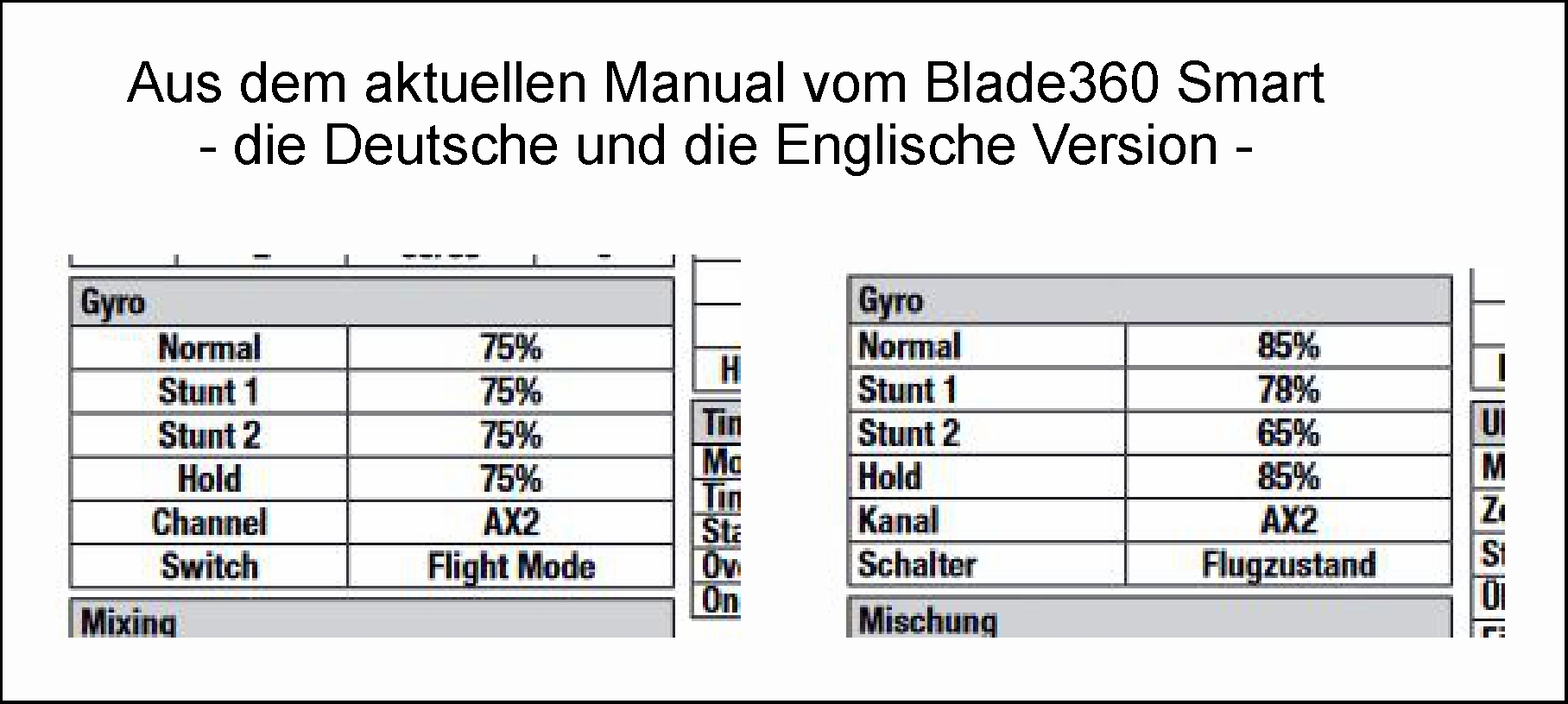Die Bedienungsanleitung des Helis ist in Teilen falsch und unvollständig und der Support von HH lässt zu wünschen übrig. Das HH nicht in der Lage ist die fehlerhafte Bedienungsanleitung (PDF und Beiblatt zum Artikel) zu korrigieren ist unverständlich. Hier mein zusammengetragenes Wissen aus nächtelangen Lesen unzähliger Threads in diversen Foren.