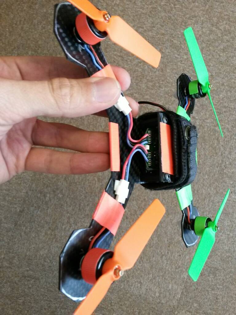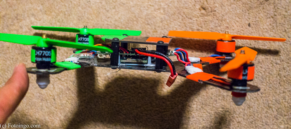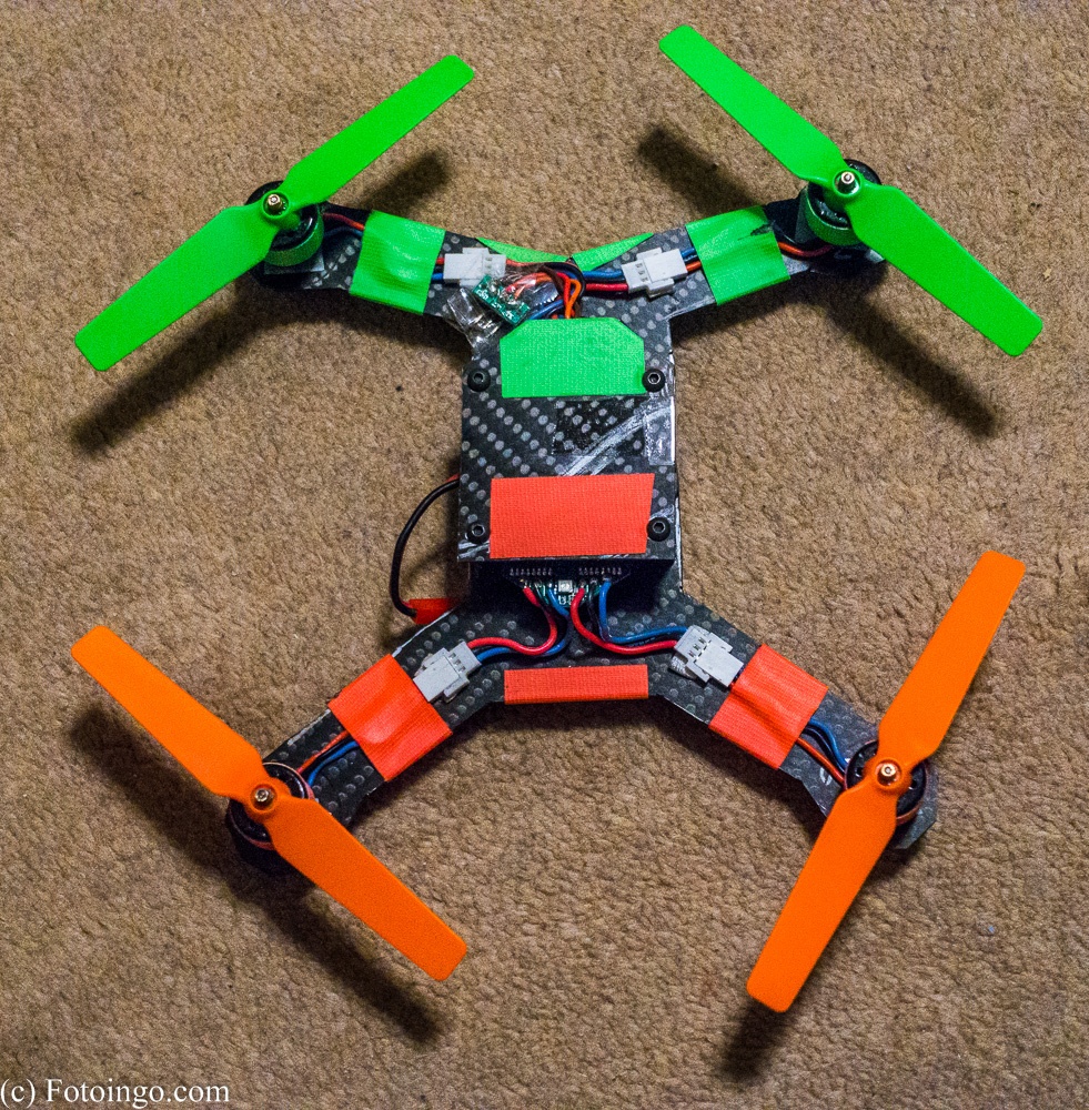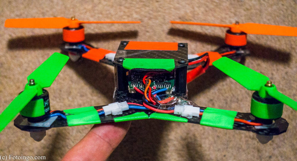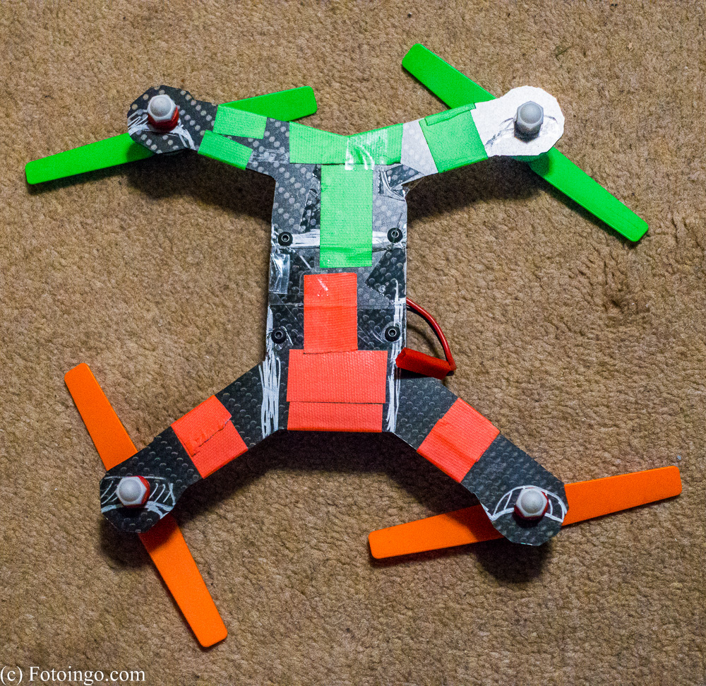 Er wiegt so übrings 136 gramm. (Also Carbon Rahmen + 3D Props aber ohne LEDs)