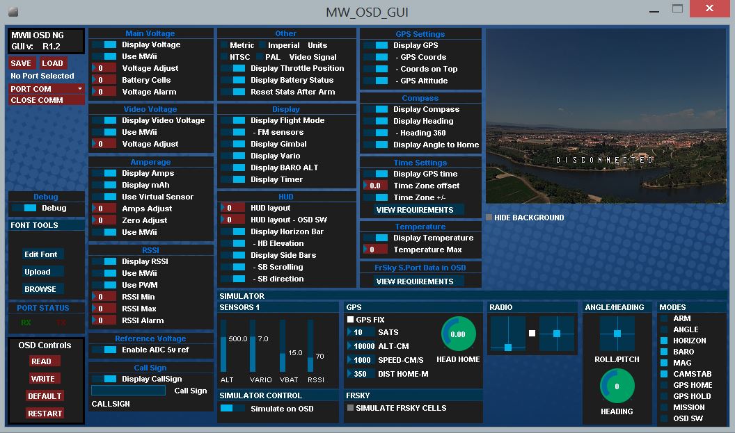 Das greift direkt die Sensordaten vom NAZE32 ab und kann eine Menge anzeigen...z. B. auch nen künstlichen Horizont (hab ich noch nicht getestet...aber kommt noch) oder den mAh-Verbrauch (wird errechnet aus der LiPo-Spannung, kein Stromsensor erforderlich) oder die Flughöhe und vieles mehr...