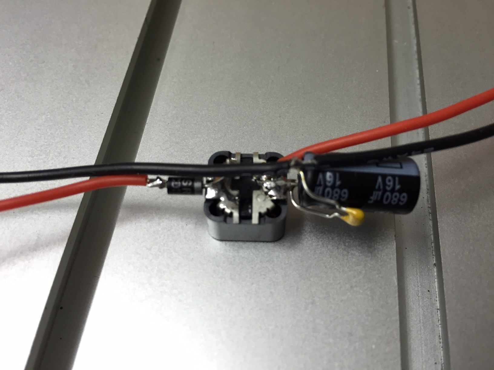 So...habe bei nem Testlauf festgestellt, daß es Streifen in der Video-ßbertragung gibt, sobald die Motoren laufen - also recherchiert und nen LC-Filter zusammengebastelt...