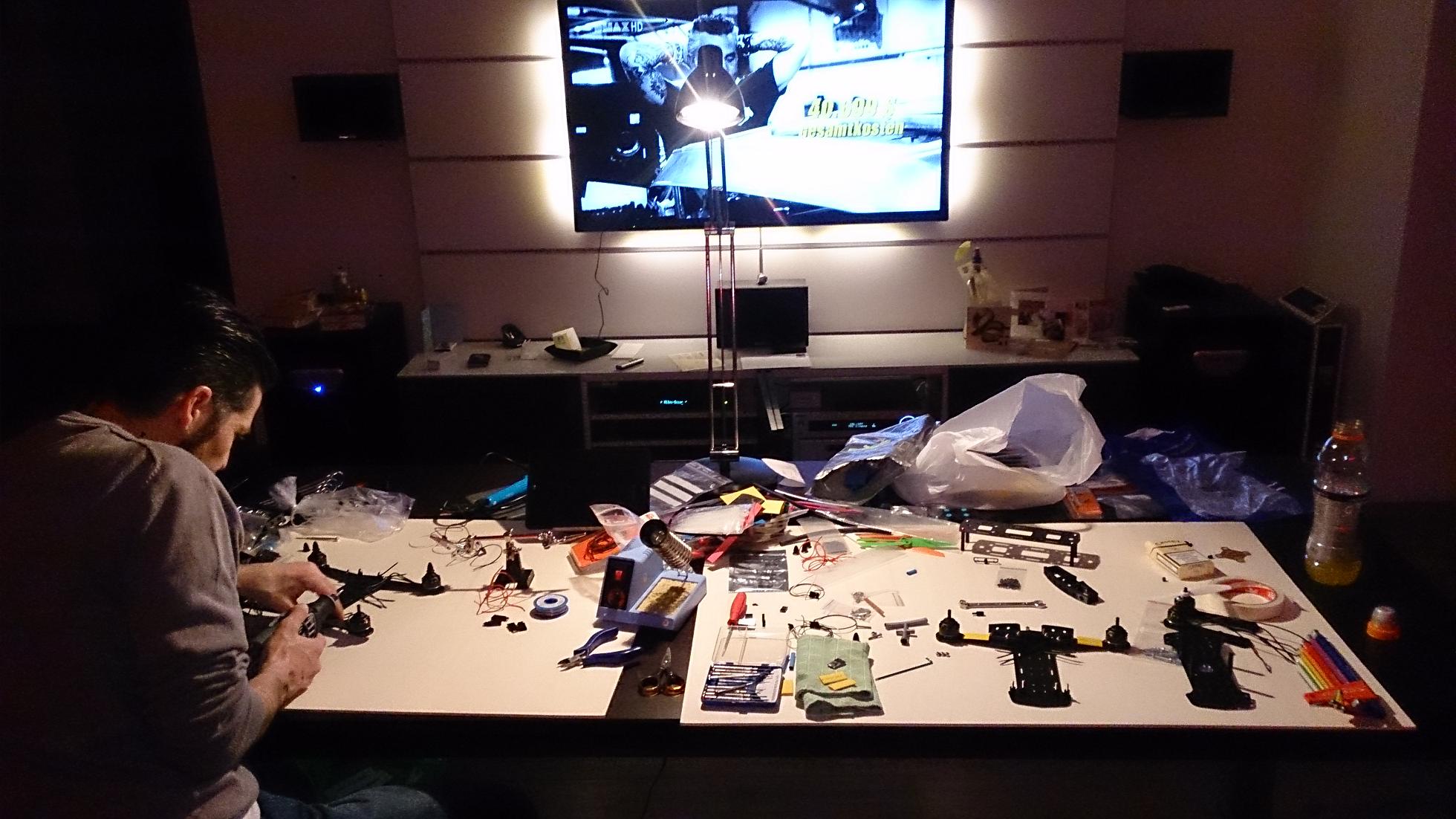 Unsere Taktik: sobald wir die Teile vor uns liegen haben, wird gebaut und eingestellt, was das Zeug hält.