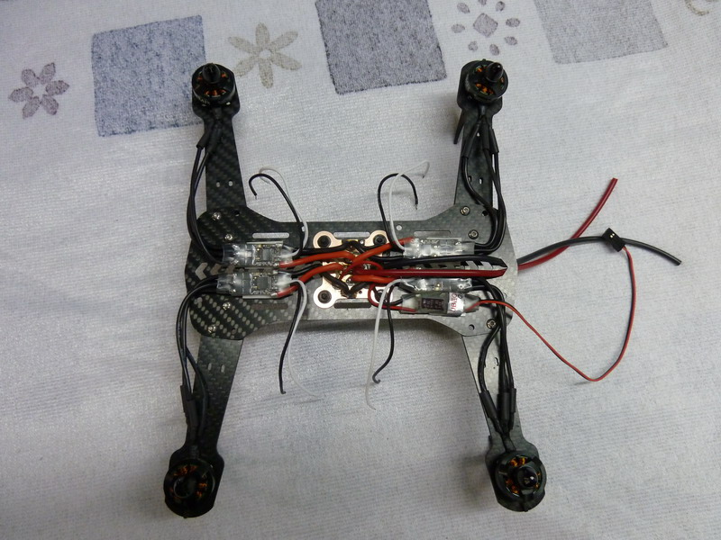 Motoren sind 4 ZMR 1804-2400KV, die jeweils von Kiss 18A/oneshot Reglern angesteuert werden.