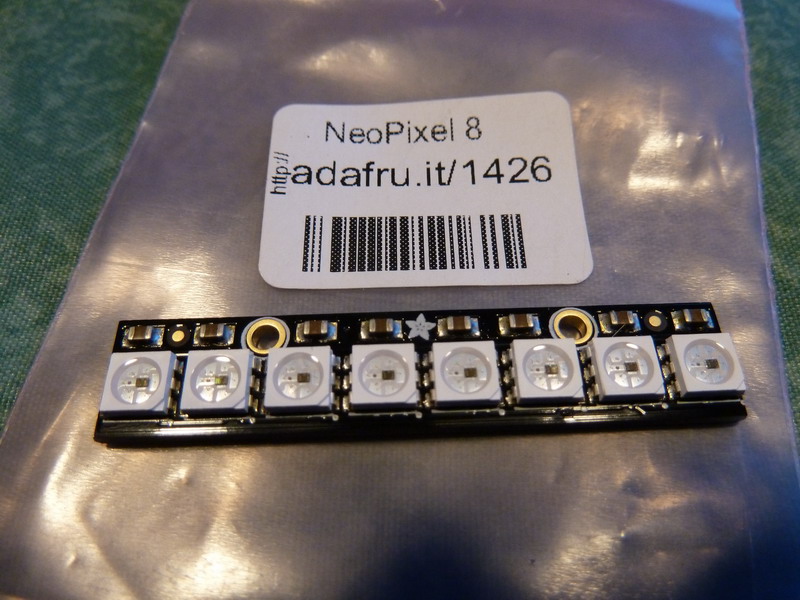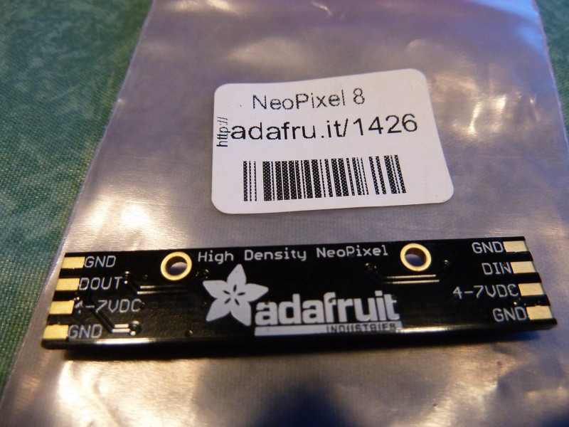 das ADAFRUIT NeoPixel8 habe ich wie folgt verbaut , Anschlüße von unten rechts, GND= Minus vom ext. BEC5V, 4--7VDC=Plus ext. BEC5V, DIN=Pin5 von der Naze, GND=Kabelbrücke zu GND unten.