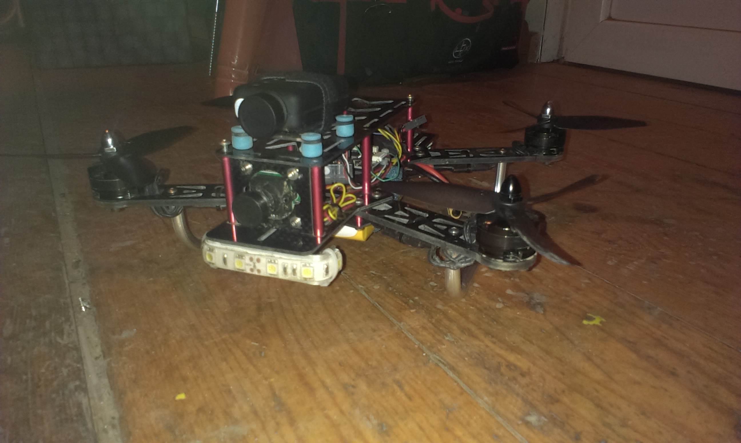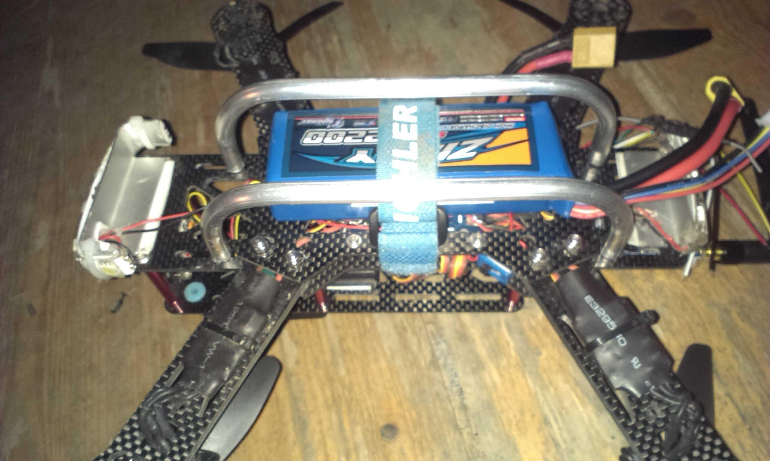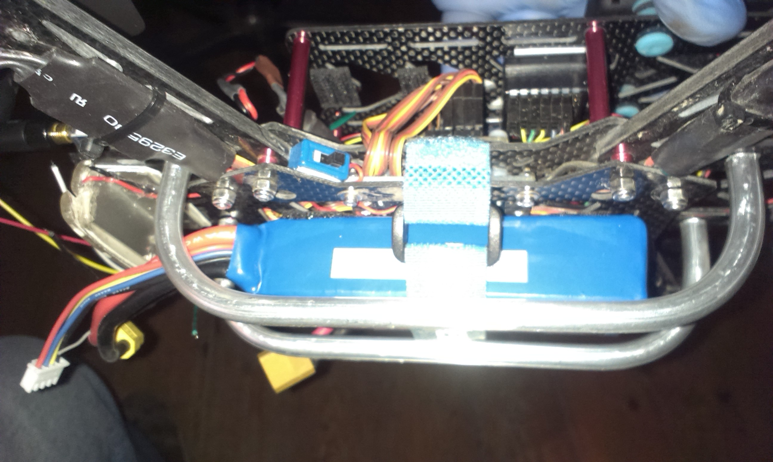 Aufbau war ganz einfach, Alurohr 5 mm (1mm Wandstärke ausm Baumarkt), mit so einem billigheimer Rohrbieger gebogen, Enden auf die ehemaligen "Beine" (Abstandsbolzen vom Emax Set) geklebt, von oben gegen geschraubt fertig ist der Nikolausschlitten!