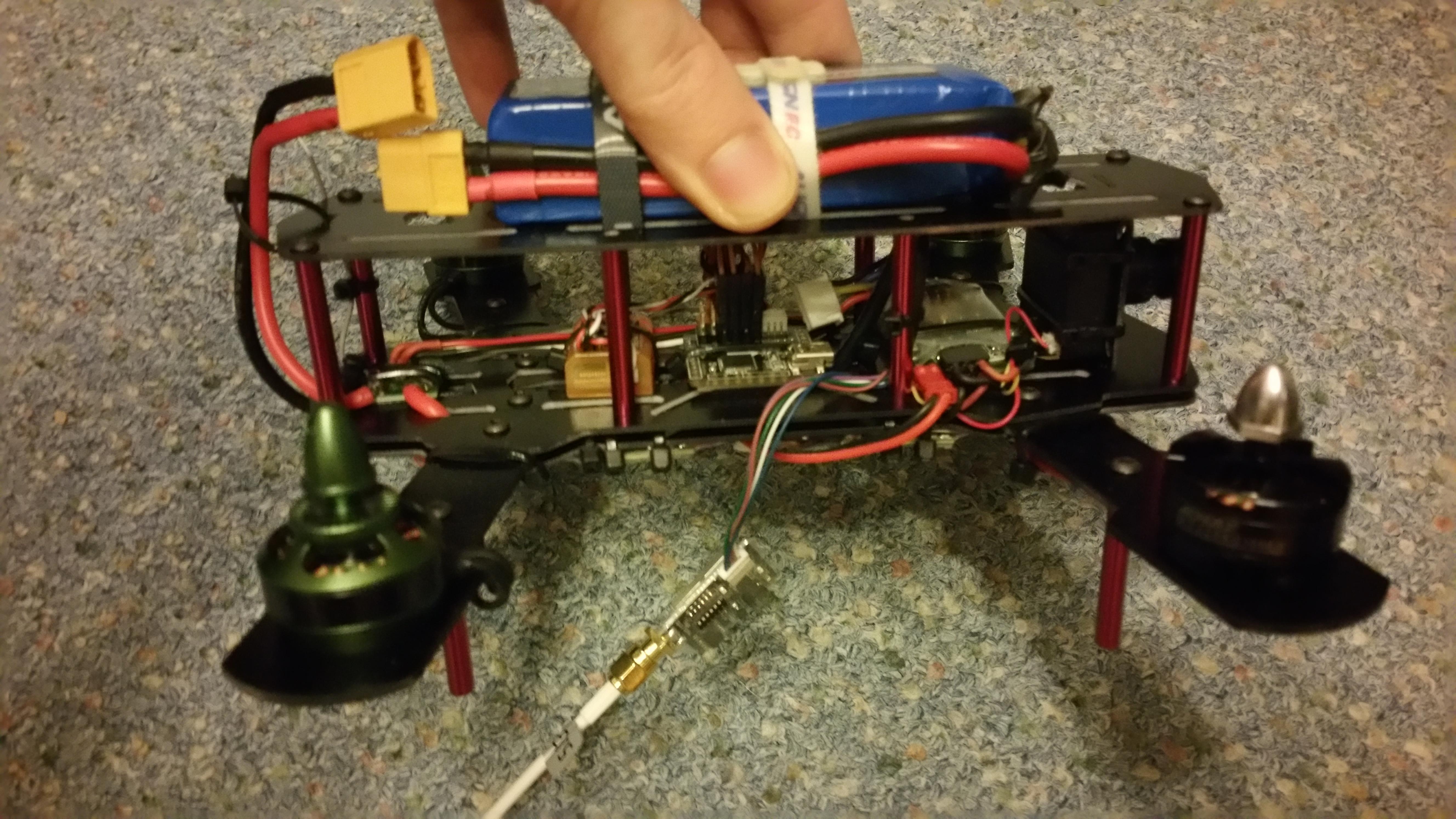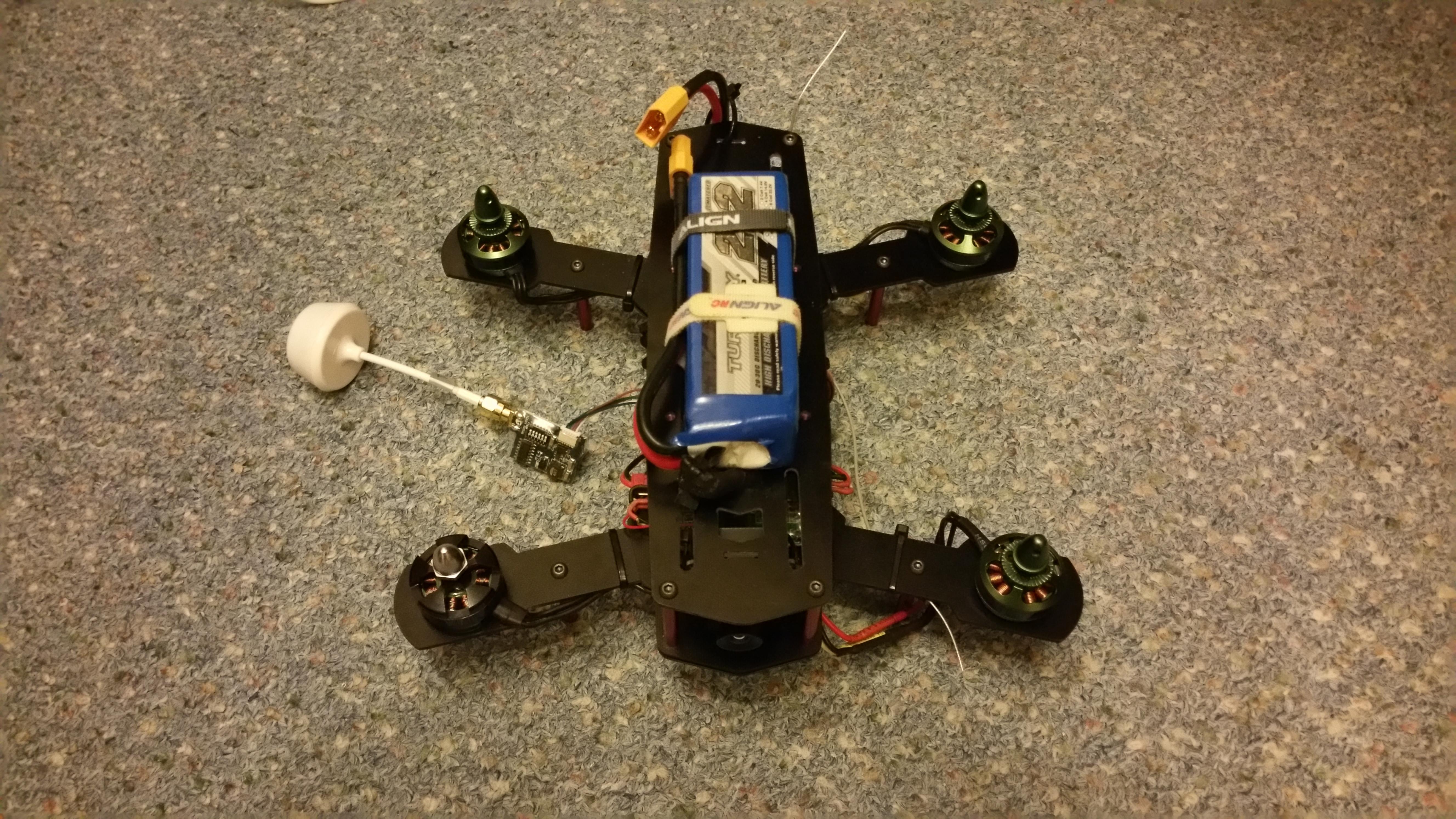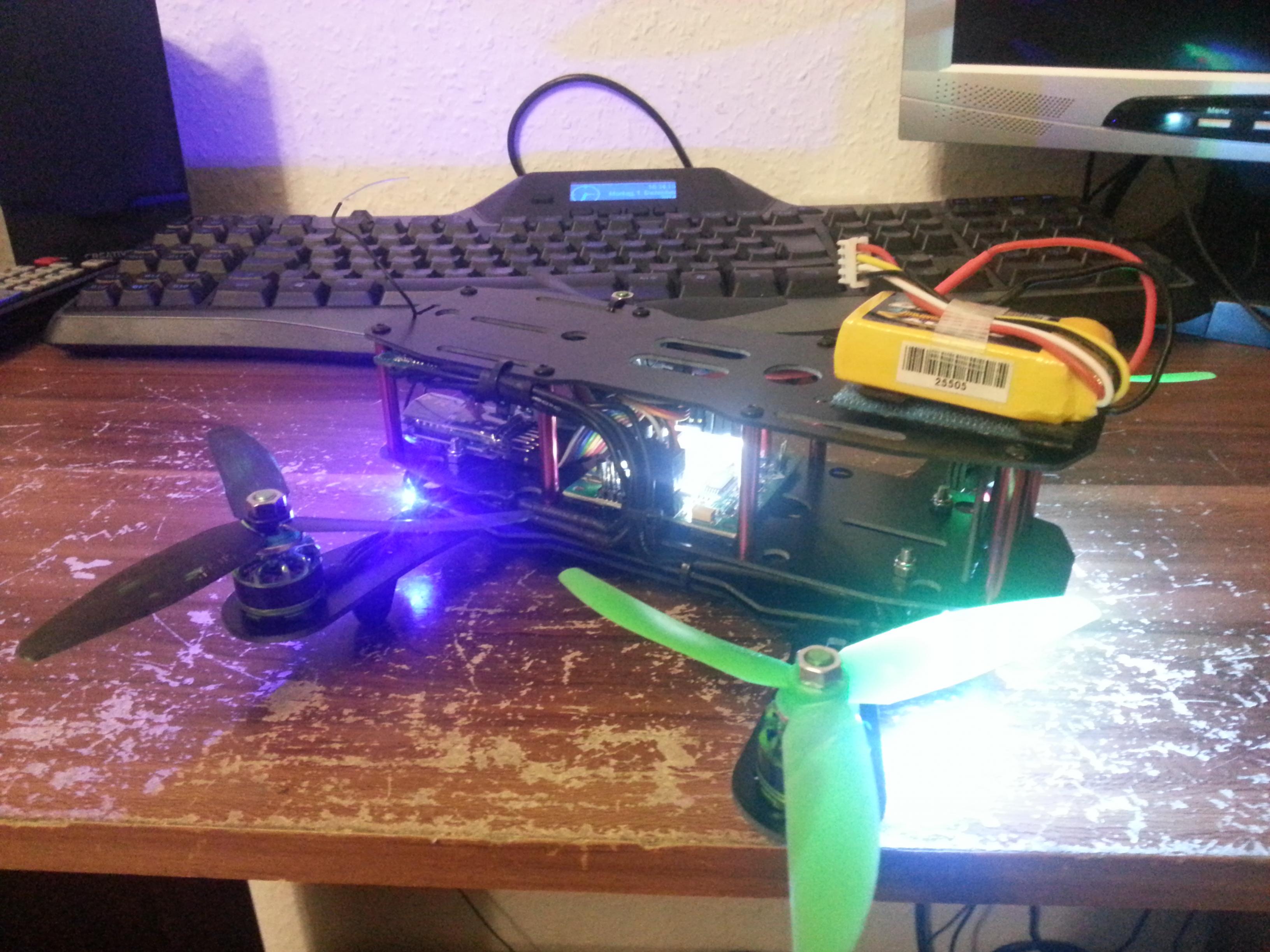 Da der Klaus mit seinem Vorhaben mich auch angesteckt hat, hab ich mir auch nen Quad gekauft. Am Wochenende ist er dann aufgebaut worden und eigentlich so gut wie fertig. Brauch nur noch ein Winkeladapter für die FPV TX Antenne.