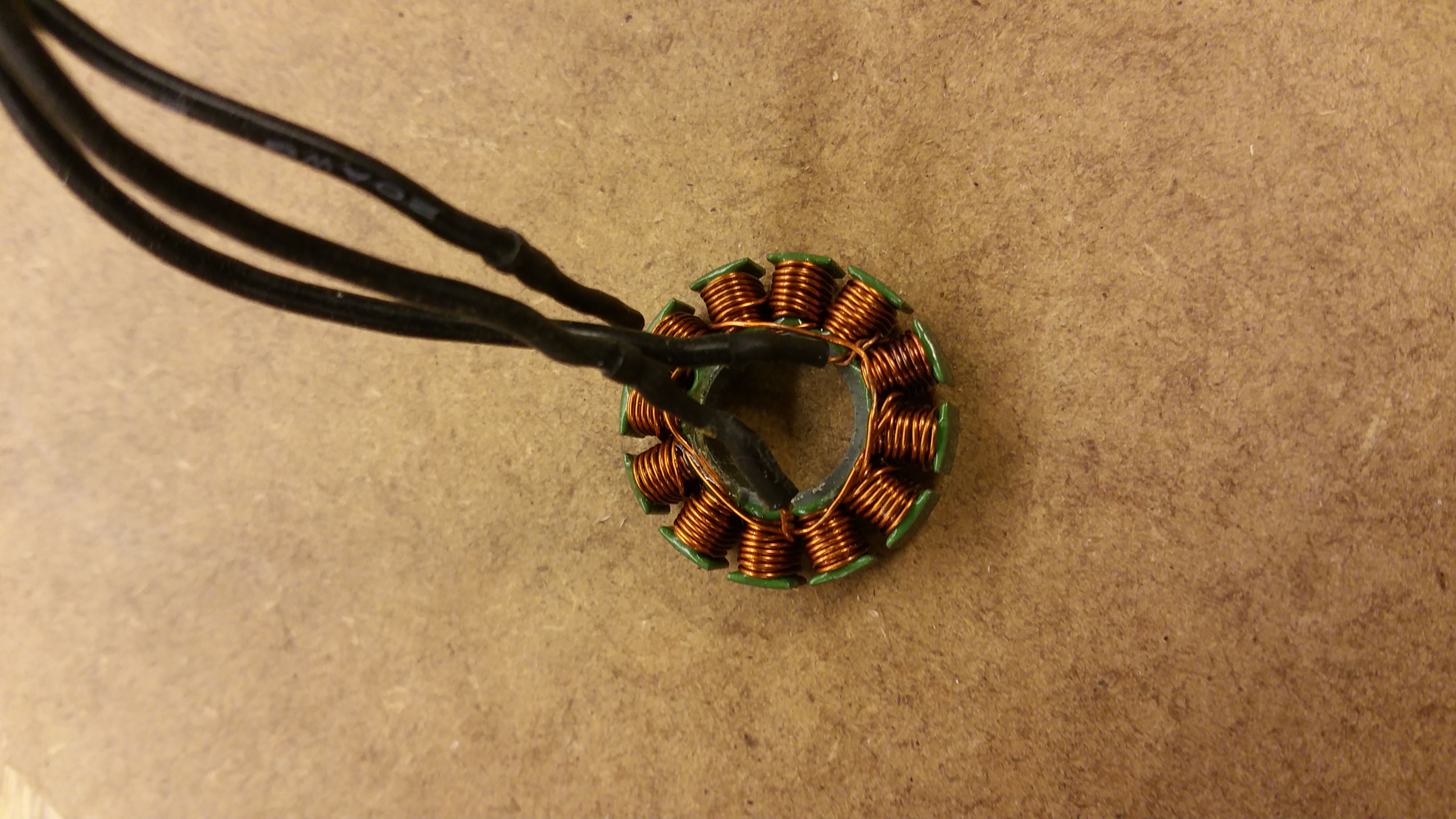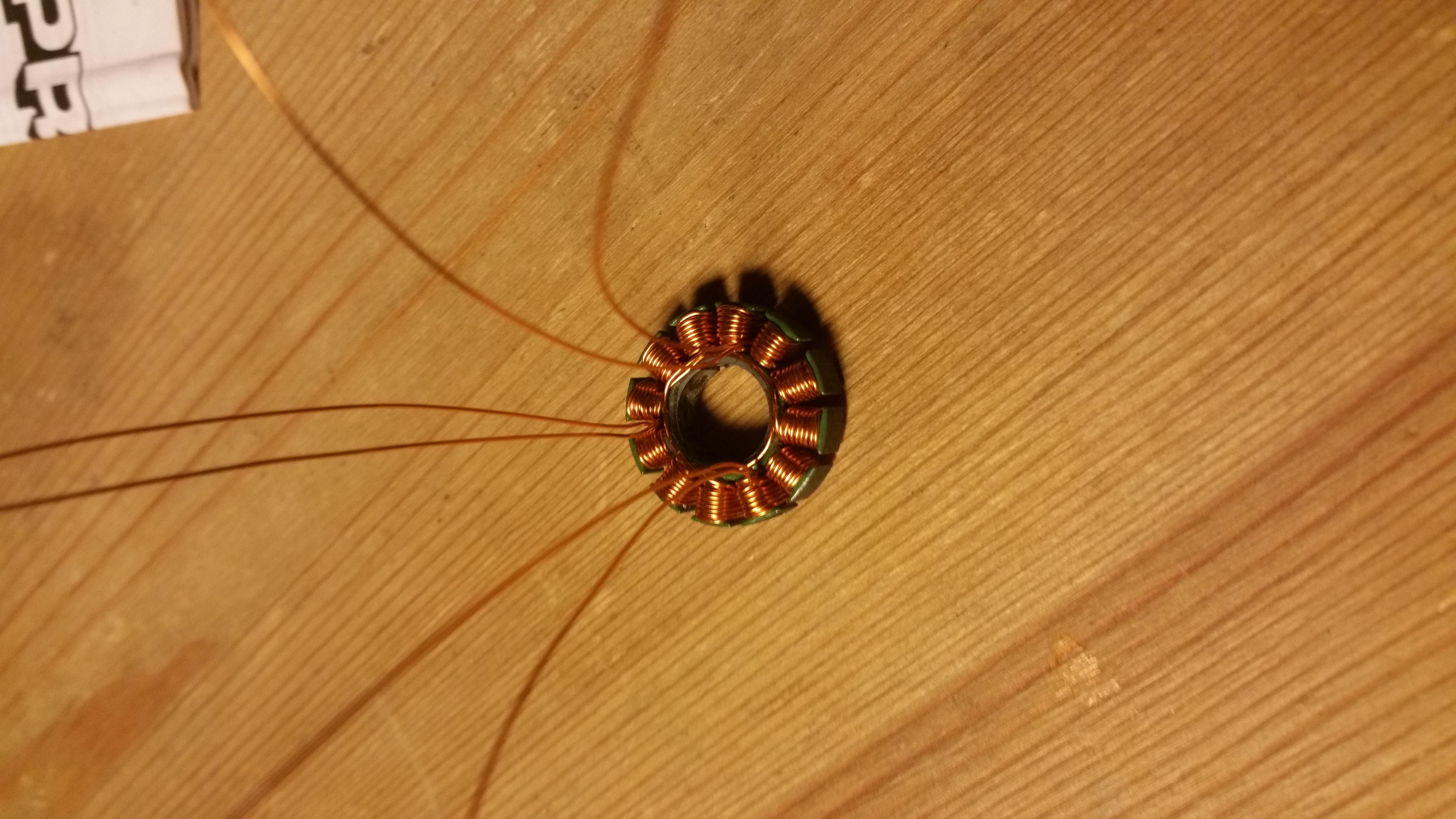 Da beim testen ein Motor Rauchzeichen gegeben hat, hab ich auch gleich mal meinen ersten Motor neu gewickelt. Hatte zufällig den passenden Draht zu hause. Jetzt geht der Motor wieder ohne Probleme