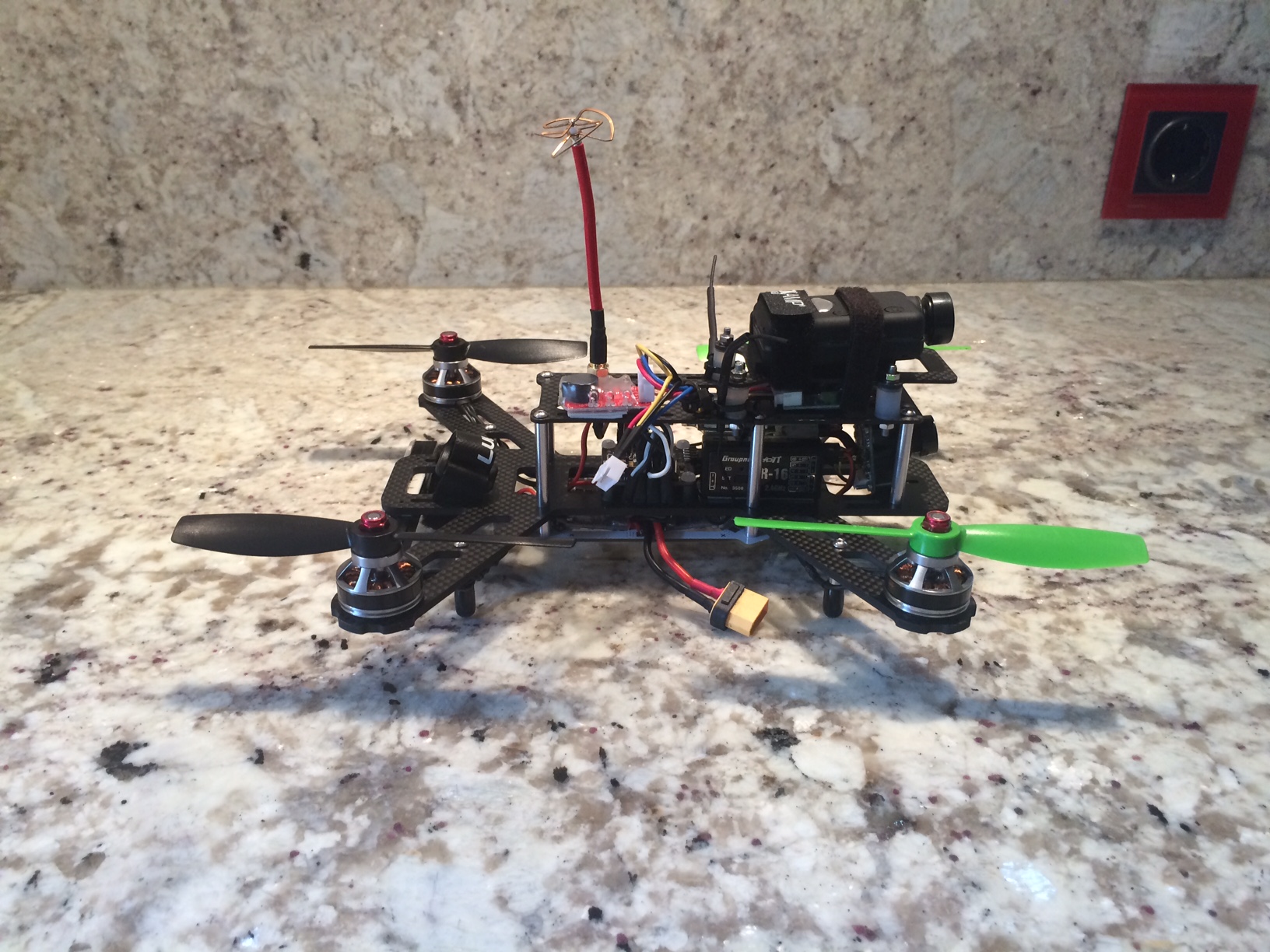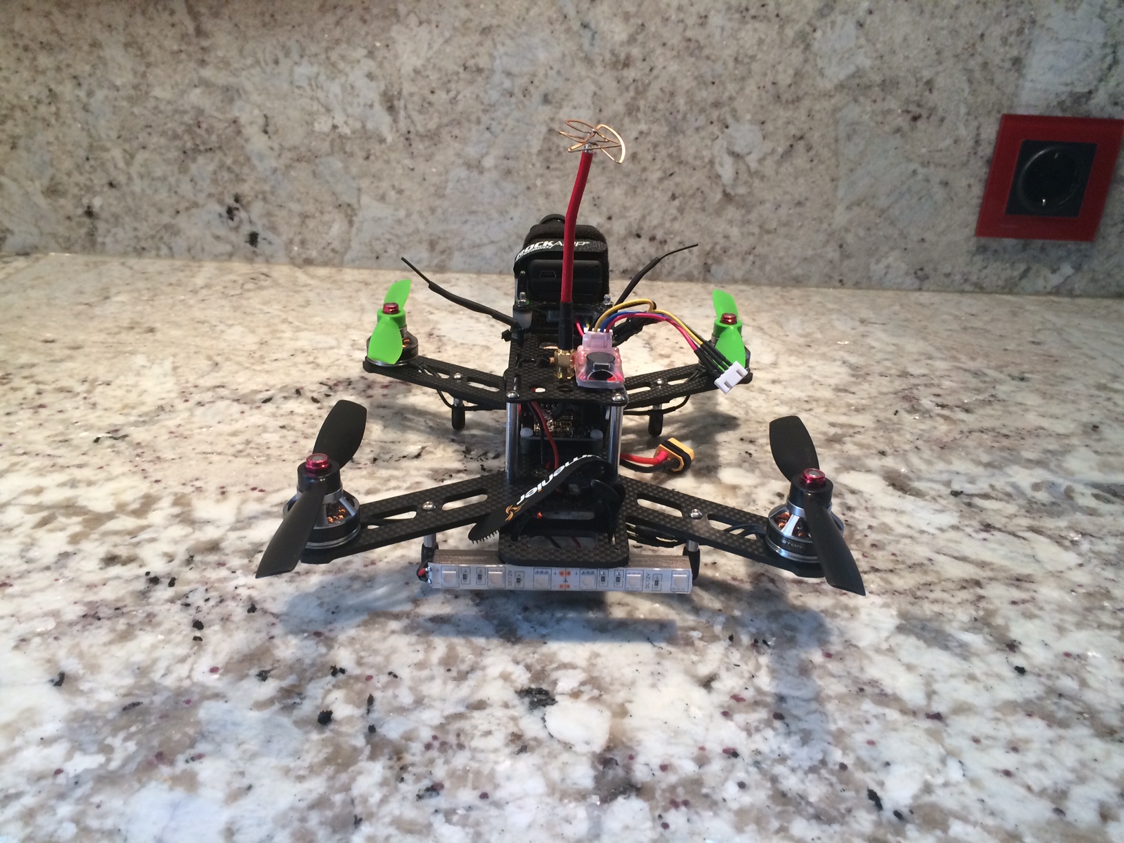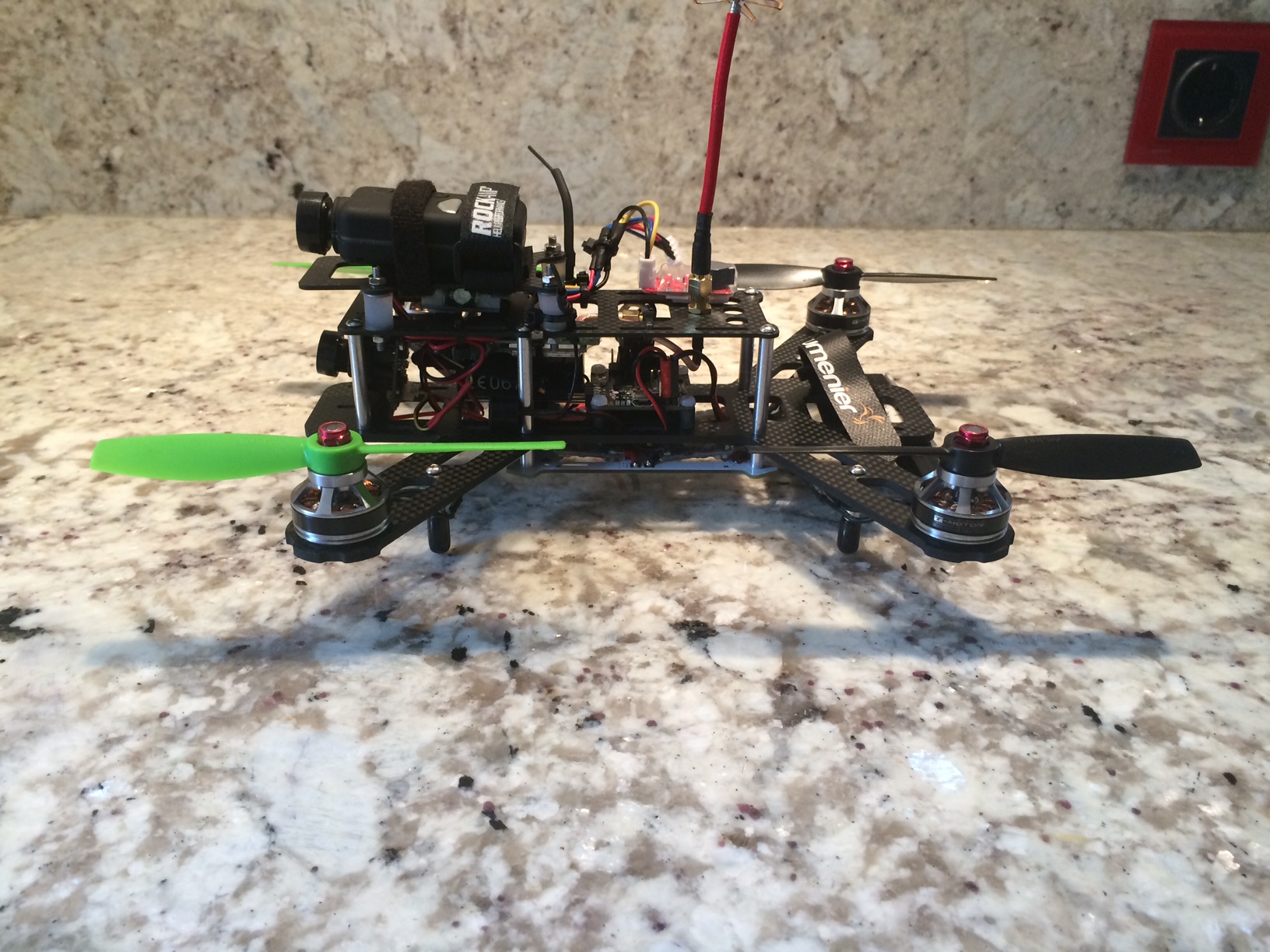 Schalter ein - Board ist gearmed - Motoren laufen mit mindestens MinThrottle (oder eben mehr, wenn Du Gas gibst)