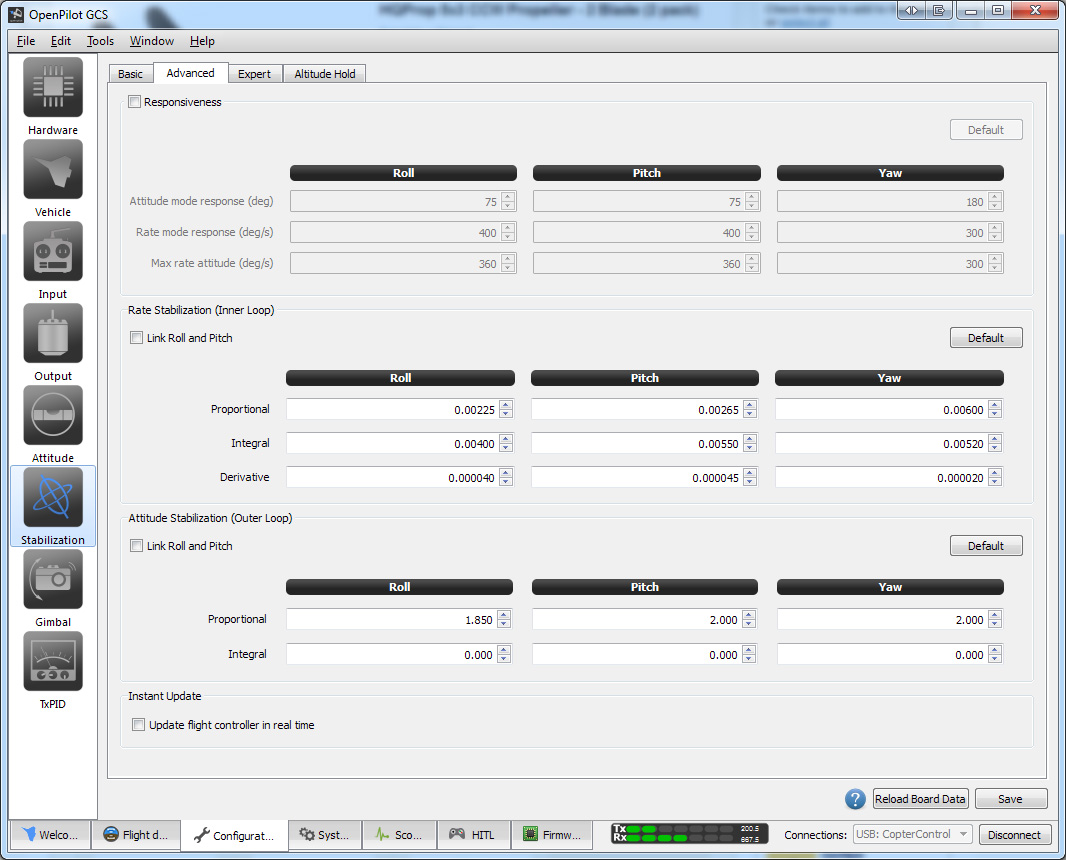 Habe beim Wert "Neutral (slowest for motor)" 1150 eingestellt (ab ca. 1100 laufen alle Motoren), aber die Regelung/Stabilisierung des CC3D setzt erst ein, sobald ich ein bischen Gas gebe!