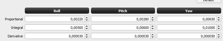 Alles was ich in den Szenen fliegen will sind saubere Kurven bzw. gerade Strecken. Die Unruhe kommt nur daher das er entweder aprupt wegbricht oder ich immer irgendwie nachkorrigieren muss. Wie gesagt, diese Mäzchen macht er ziemlich unabhängig davon wie ich den PID stehen habe. Aktuell steht er wie im Bild unten.