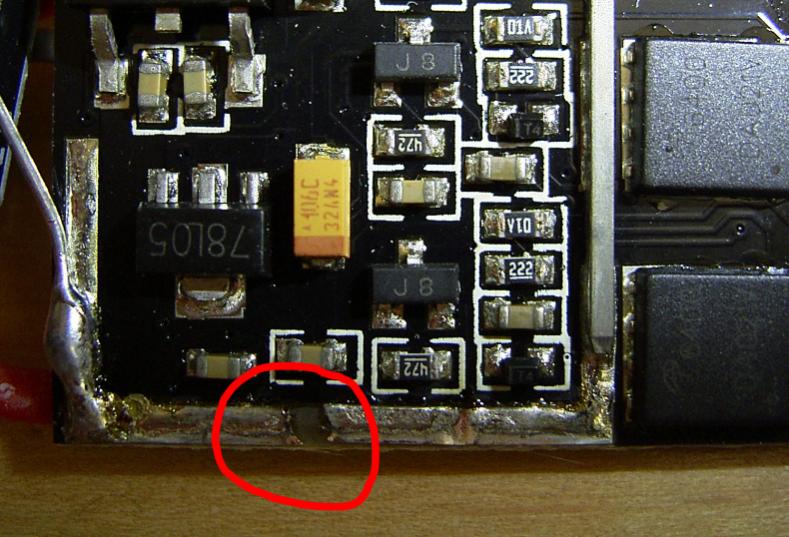 Was ist denn mit dieser Stelle der Leiterbahn? Sieht aus als wäre da was unterbrochen, beim zweiten Regler sieht das anders aus.... Oder täuscht das nur am Foto?Zitat von Schöni Beitrag anzeigen