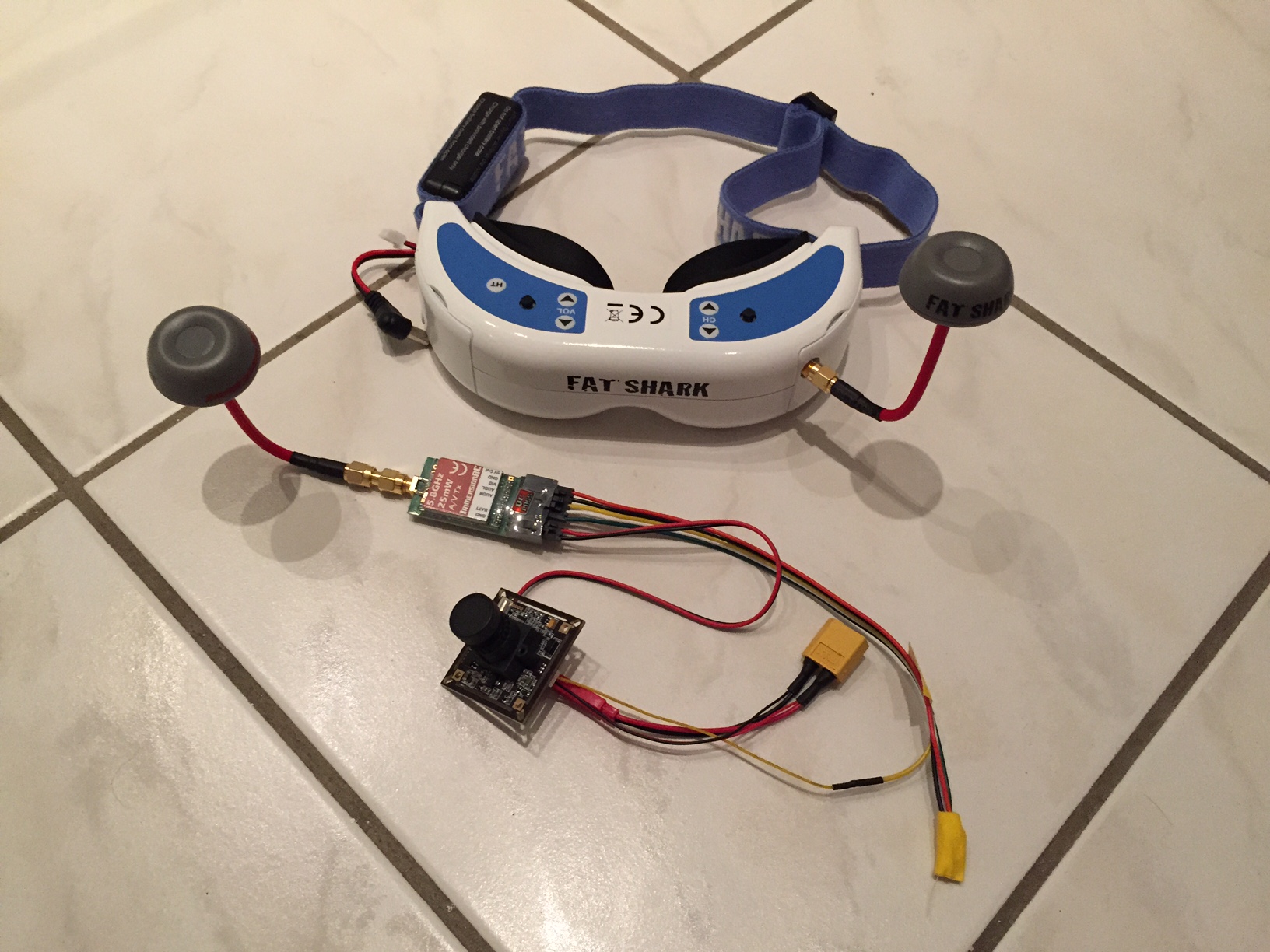Also bei mir ist es die Fatshark Dominator V2 mit dem TBS RX, das Immersion RC 25mW als TX.