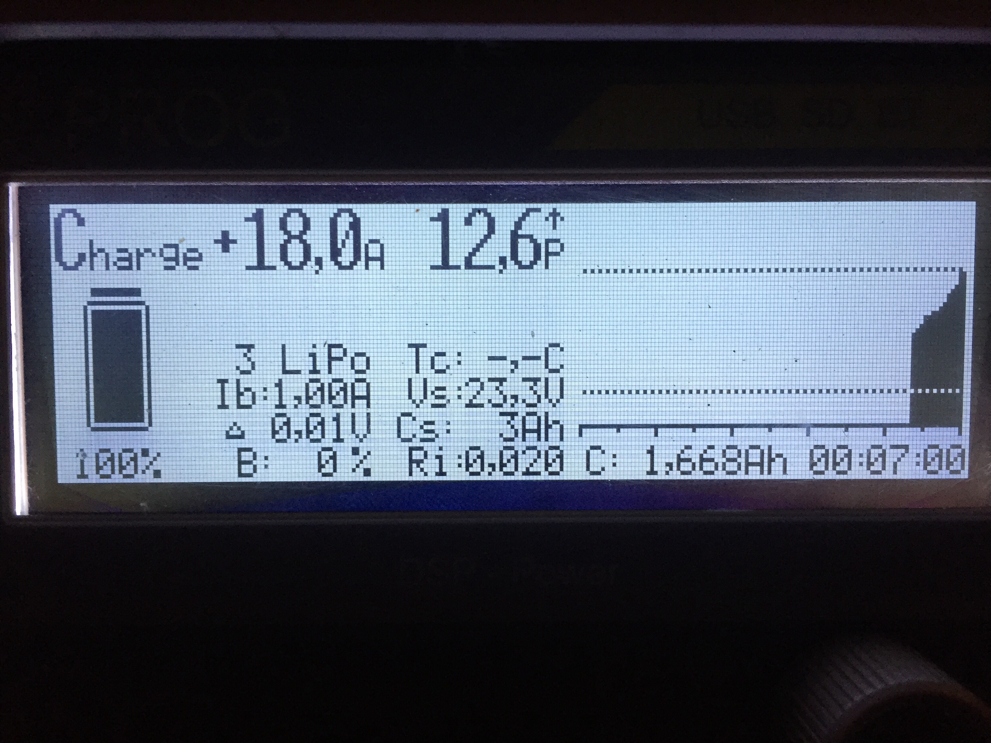 Letzte Ladung war jetzt mit 8,18C / 18A - in 7min 1668mAh - voll auf 12,6V!