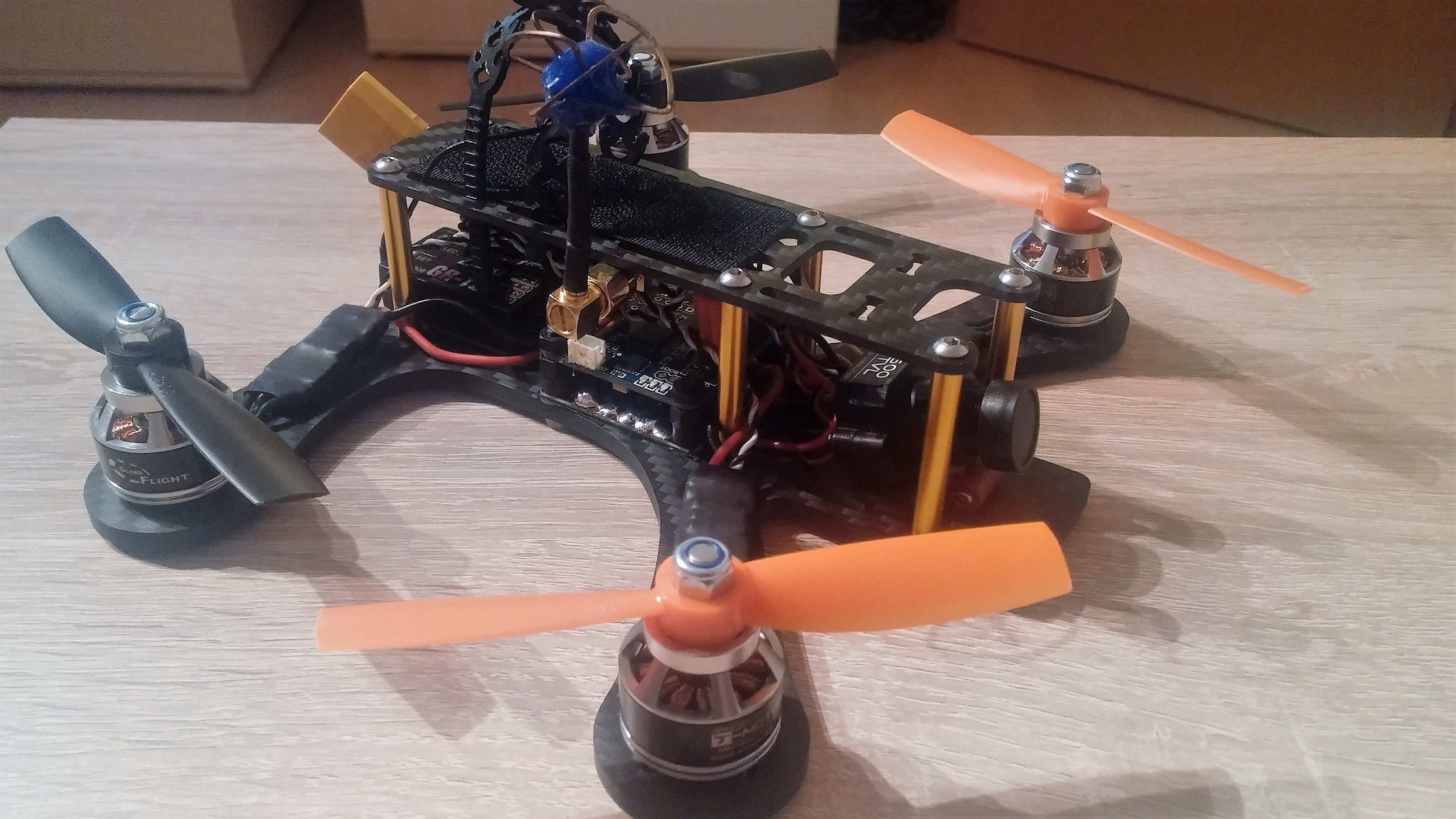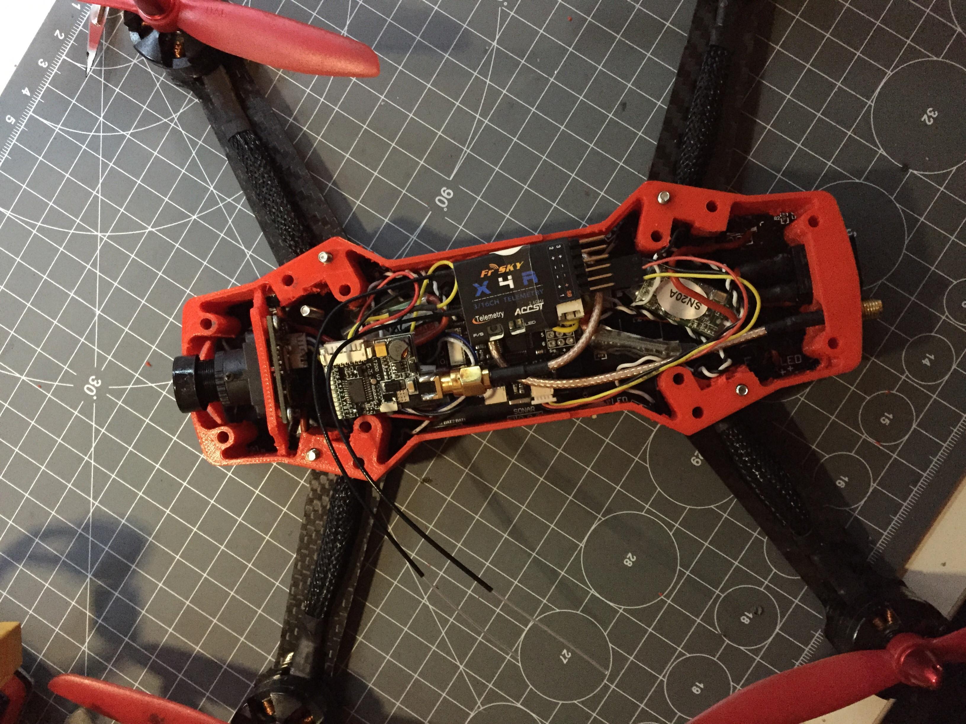 Gewicht mit FPVgedöns ohne Lipo 244g mit 4s 1300 Lipo 390g dazu kommt noch nee Xiaomi 60g. Etwas Gewicht könnte man noch sparen wenn man die Aluabstandshalter gegen Plaste tauschen würde mal schaun aber mit leerem Akku geht er schon gut nach oben.