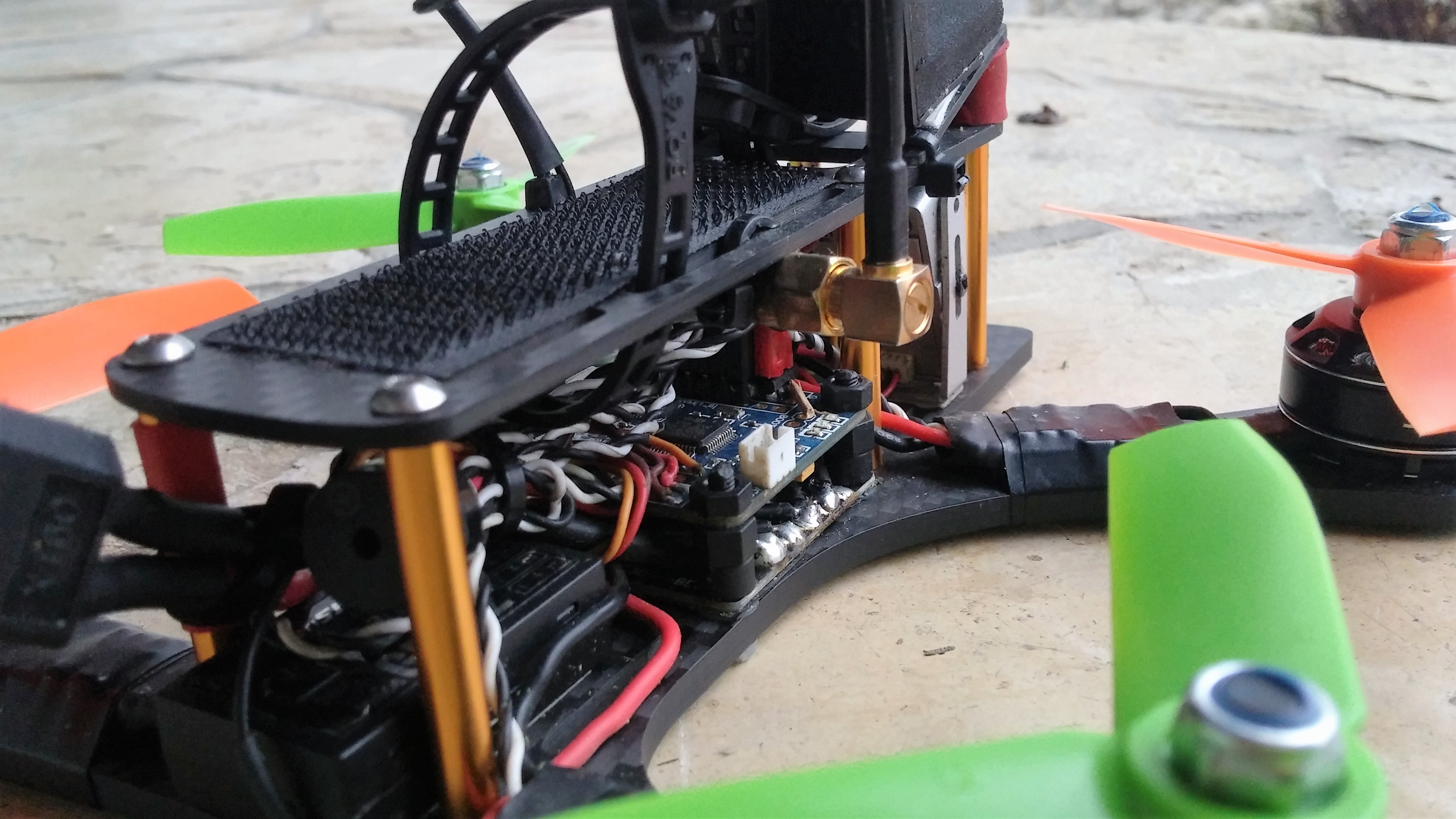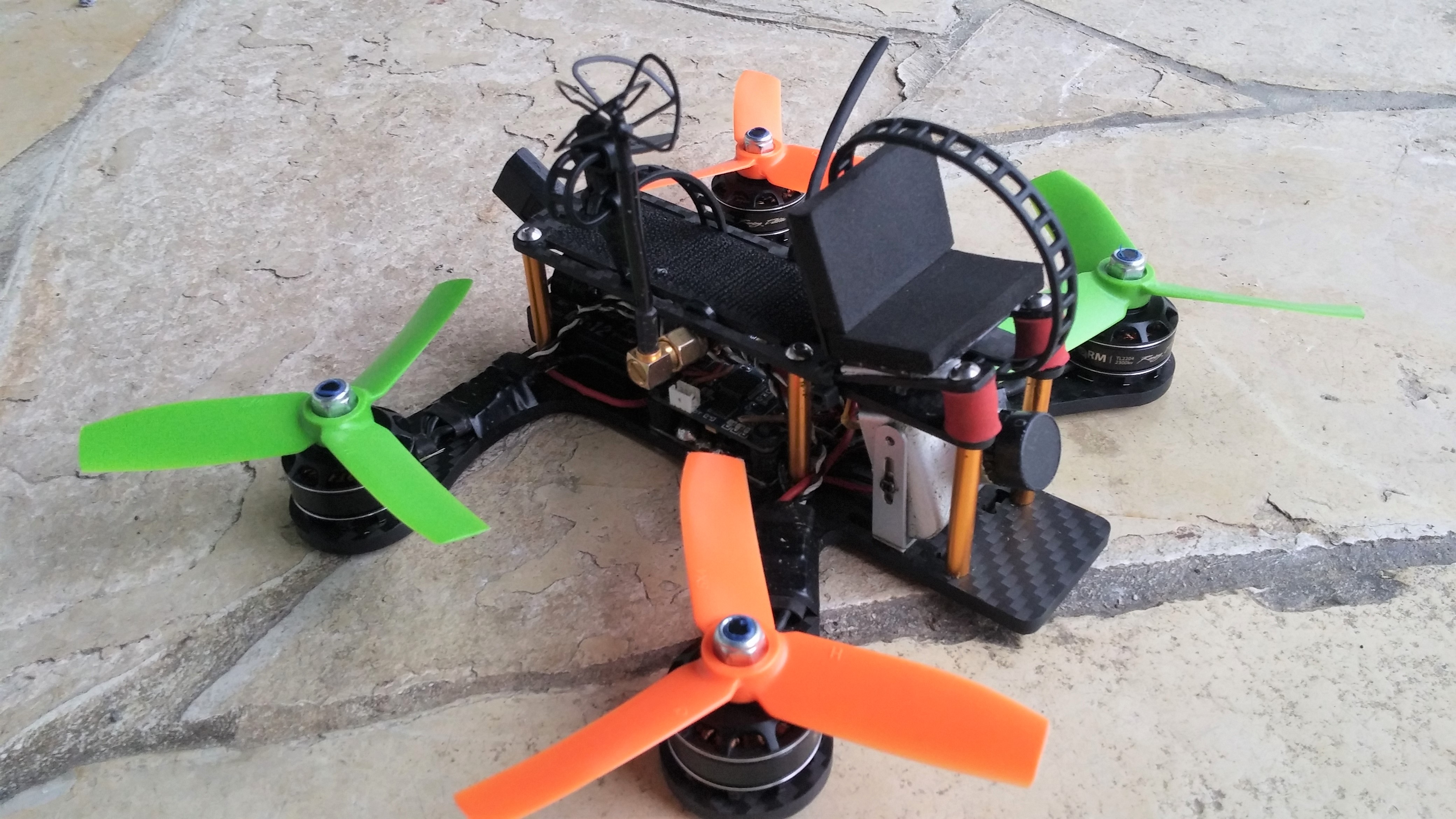 Hab einen Tweaker180 mit 2204er Motoren Props derzeit 4x4x3 geht wie Sau. Leergewicht 300g.