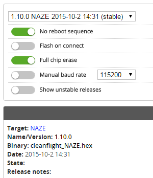 aber ich dachte das mal irgendwie was da stand mit V 1.2 oder so aber konnte nicht sehen ob es für cleanflight gemeint war oder das für das board die v1.2 gemeint war