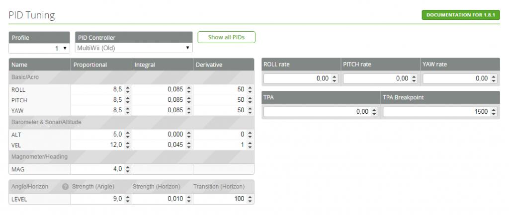 ich würde auch nicht den MultiWii (old) als Controller nehmen, sondern den MultiWii (rewrite)