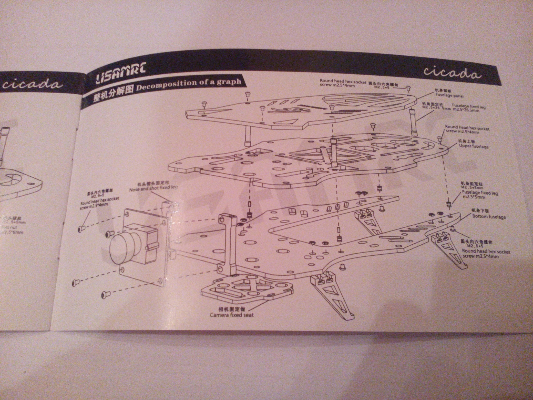 Die Arme sind 5mm stark, es wurde auf der Unterseite aber gut ausgefräßt. Was ich sehr gut finde ist die Stromverteilungsplatte, das ist eigl. ganz gut gelöst. Die oberste Platte ist kein GFK sondern irgendein Kunststoff. Die Kamera wird bei diesen Quad unter der Bodenplatte montiert, die Halterung dafür ist auch entkoppelt. Das LG sieht auch ziemlich massiv aus. Was es noch zu sagen gibt... die Arme sind klappbar und die 135g Gewicht gehen in Ordnung. Die Anleitung ist mehrseitig und macht auch einen guten Eindruck.
