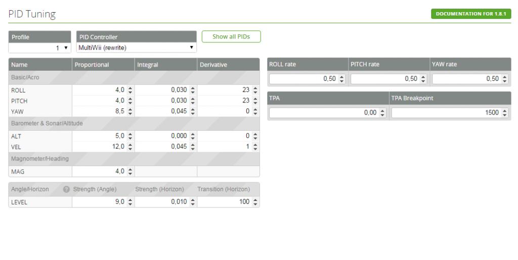 So im Anhang mal meine Einstellungen im Cleanflight.