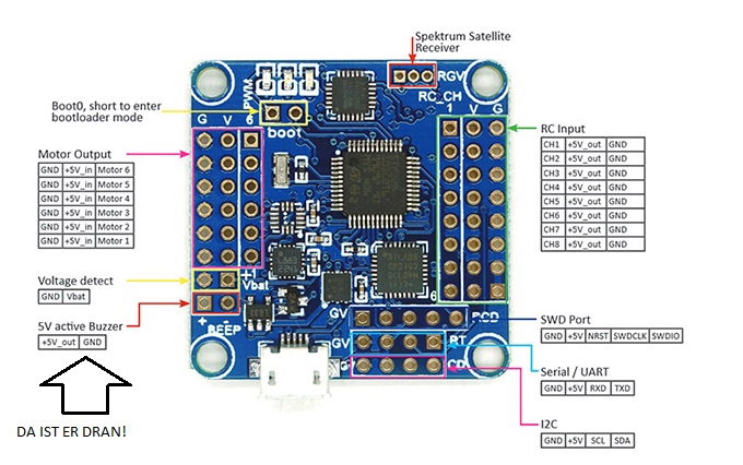unten links is er dran...Zitat von davidross87 Beitrag anzeigenWas heißt normal neben den Escs? Naze hat extra einen Port fürn buzzerHammer V3
