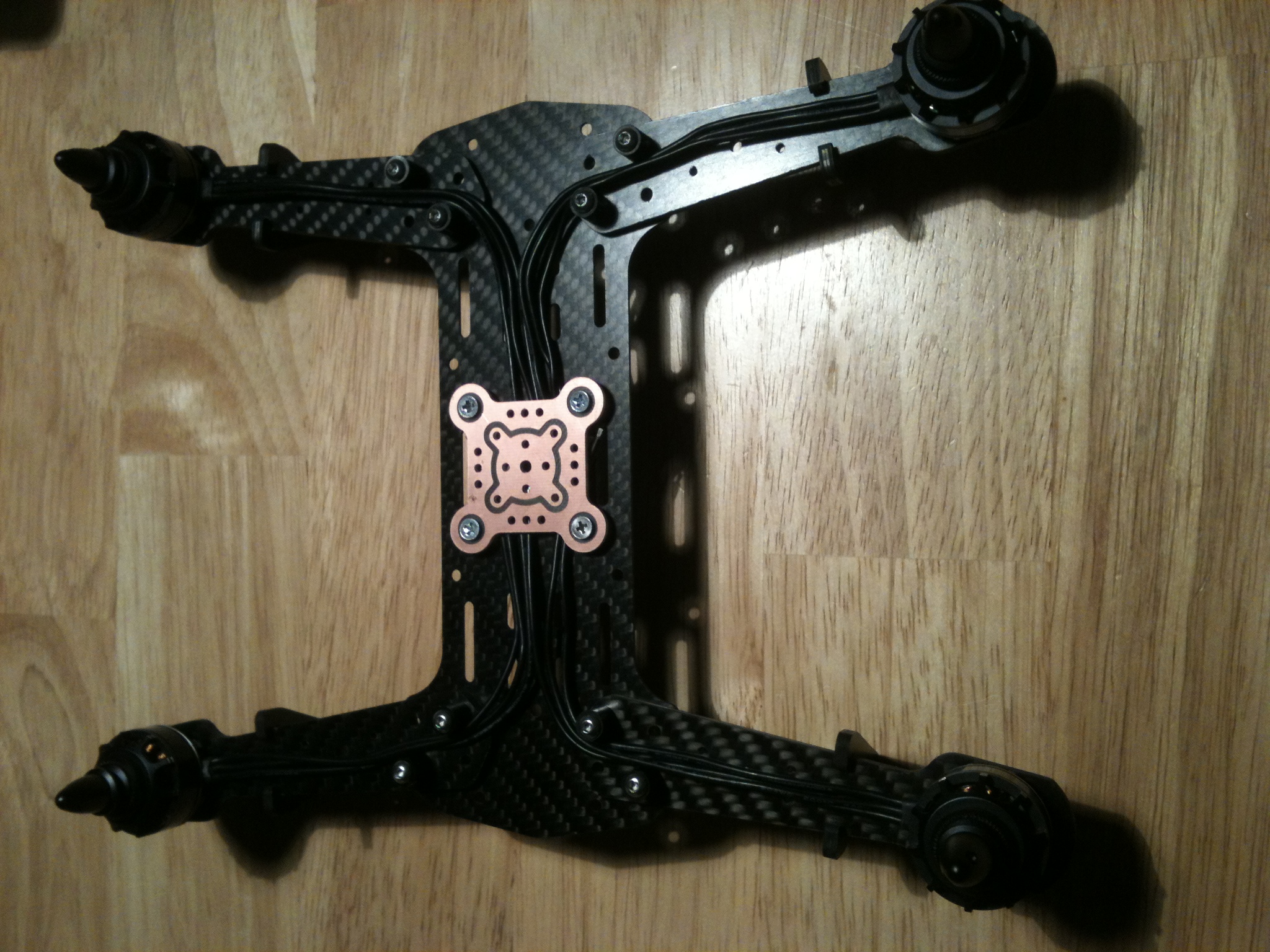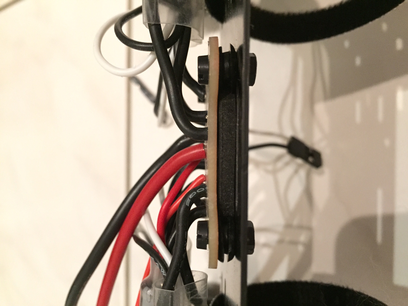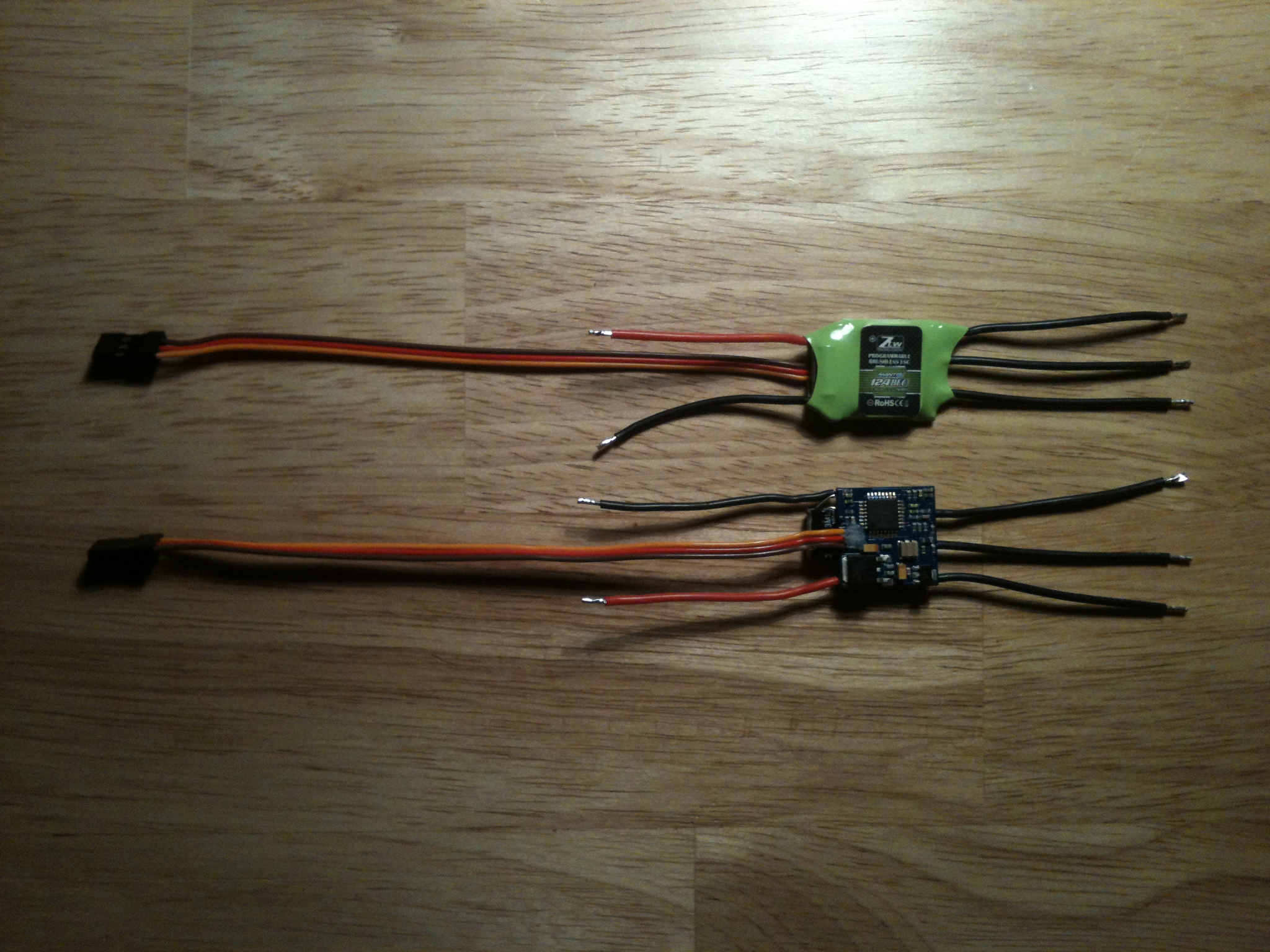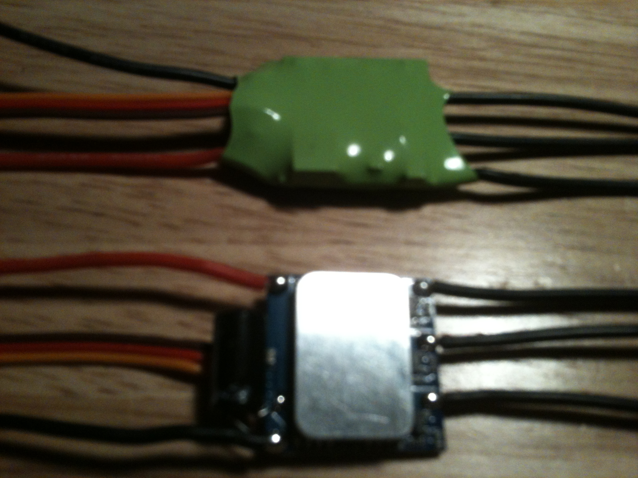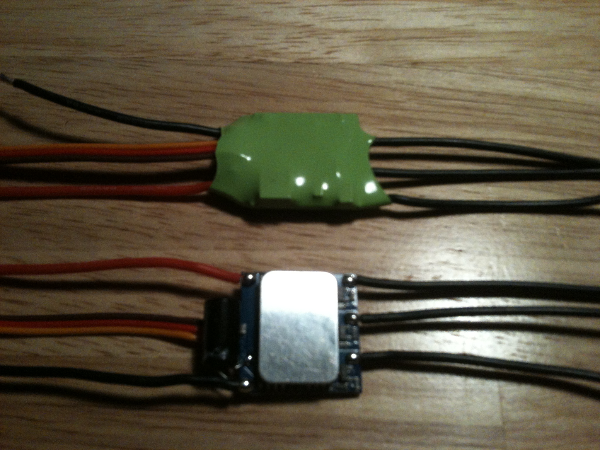 meine esc (12a simonk) passen genau dazwischen, da wo ihr die kabel der motoren in die unterseite des pdb laufen seht, da gehen die anschlüsse für das esc rein.