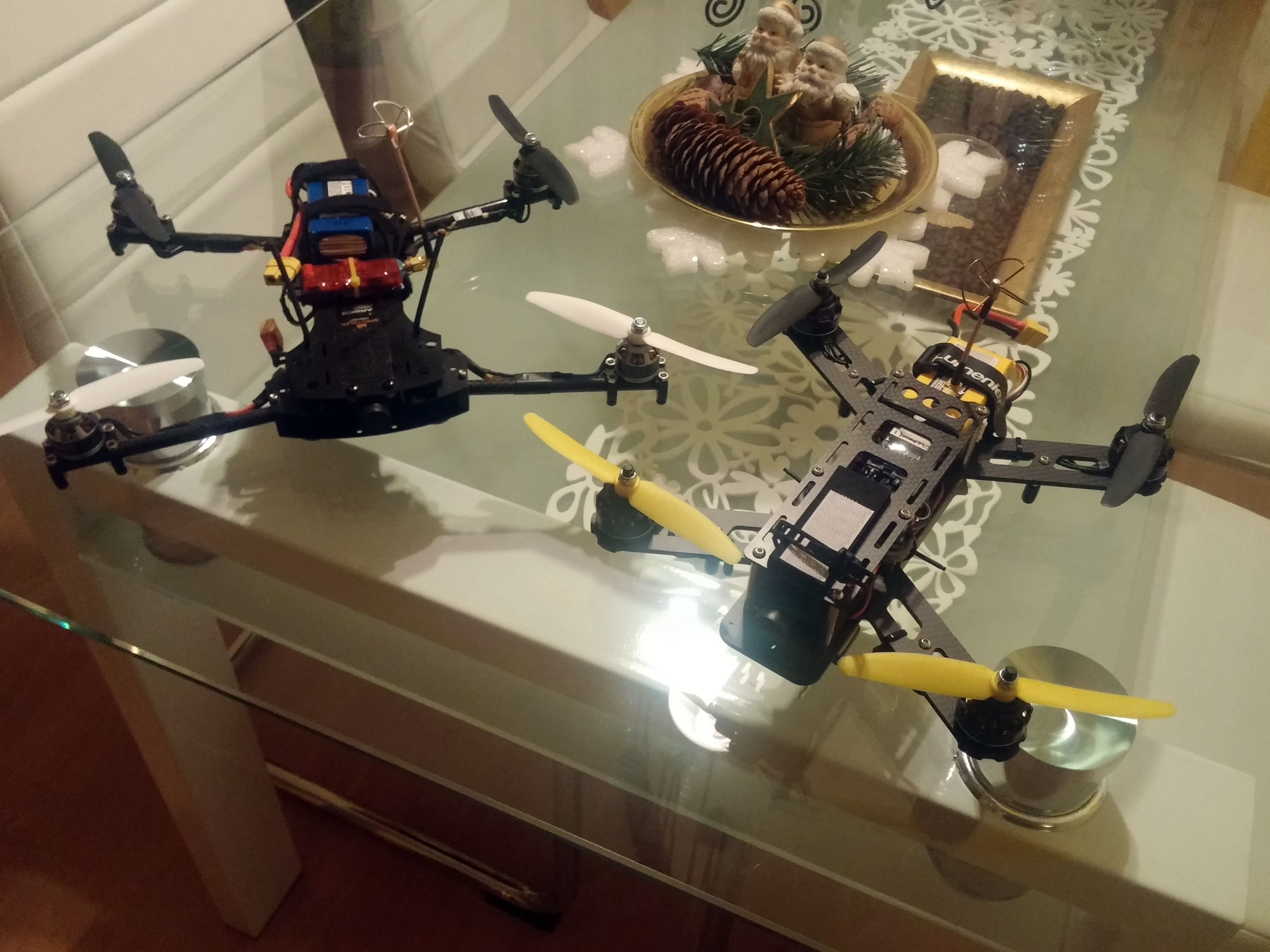 So da meine Lieferung von Flyduino heute auch gekommen ist konnte ich den QAV250 auch fertig machen eingeschwebt ist er auch schon. Macht sicht gut neben dem Hammerhead. Jetzt muss nur meine Schutzhülle für die Gopro kommen unds Wetter schöner werden