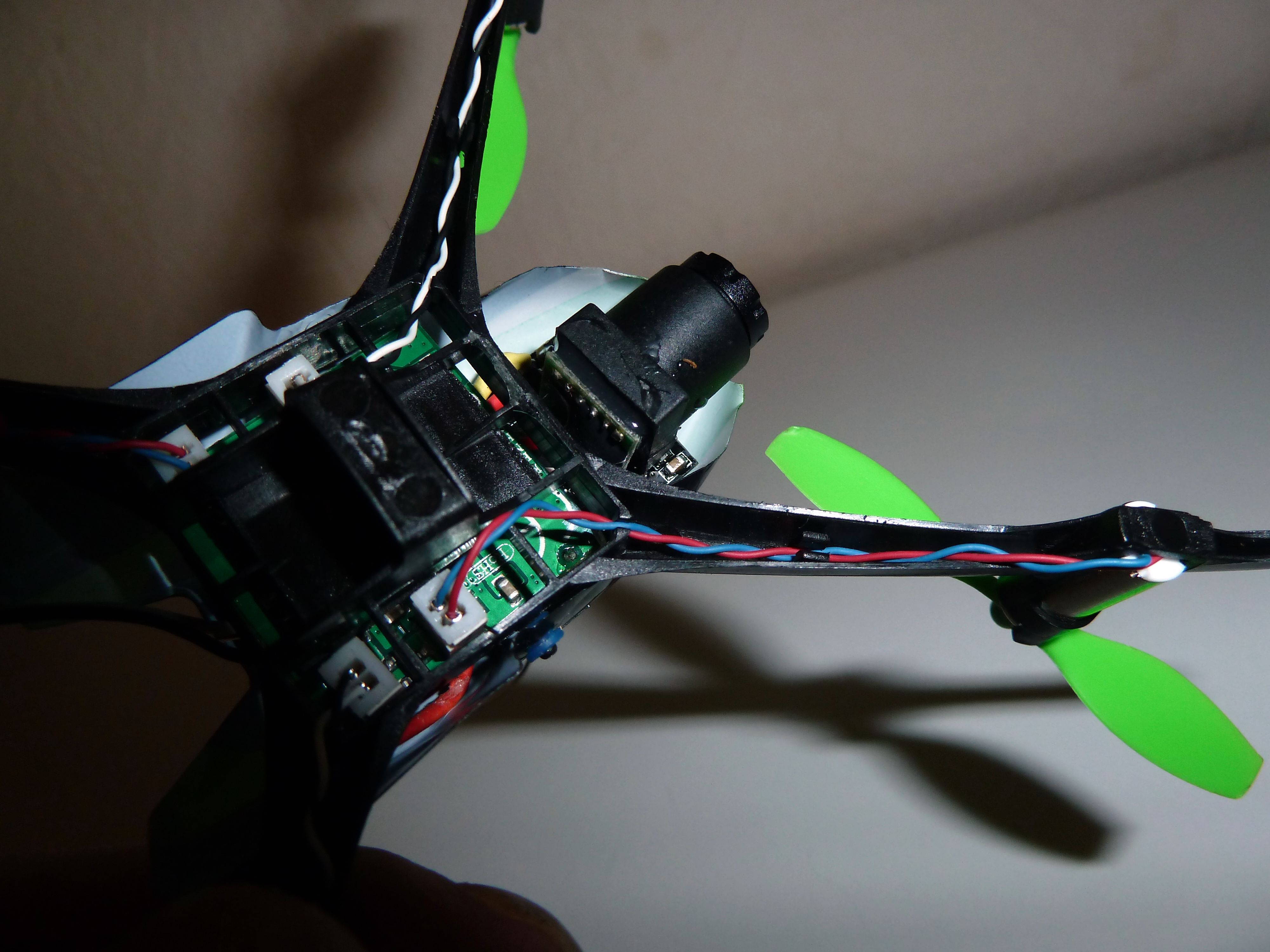 Bei der Kamera wird das komplette Gewicht ja besser verteilt, vielleicht wirkt sich das besser auf das Flugverhalten auf.