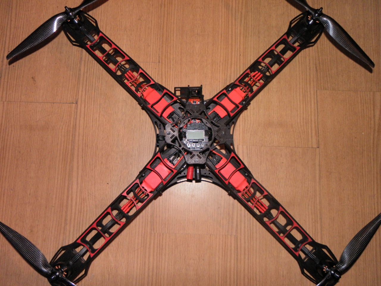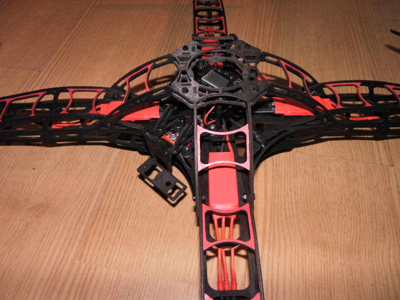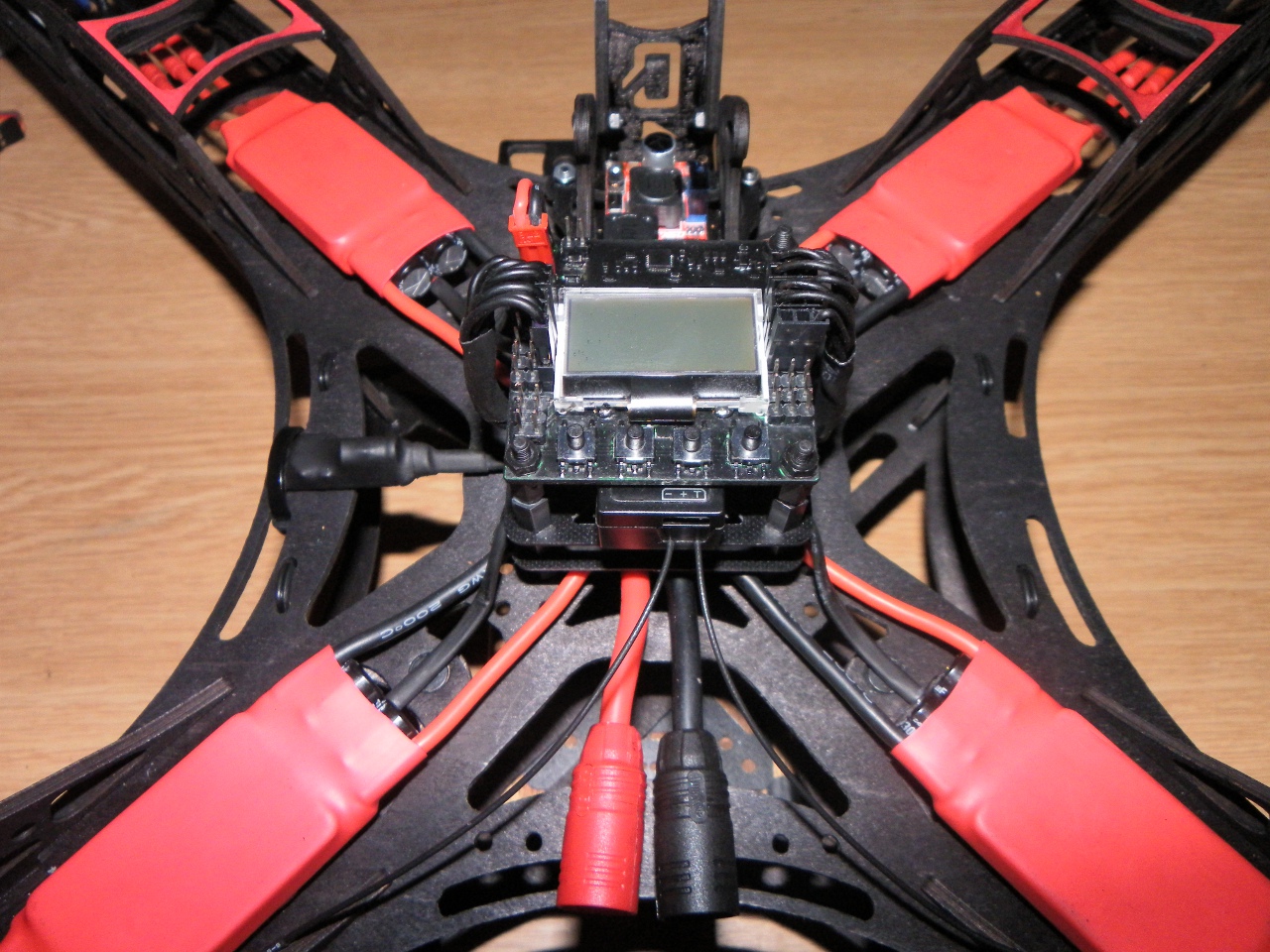 Und alles zusammengesetzt. Die 4mm Kunststoffschrauben der Ausleger