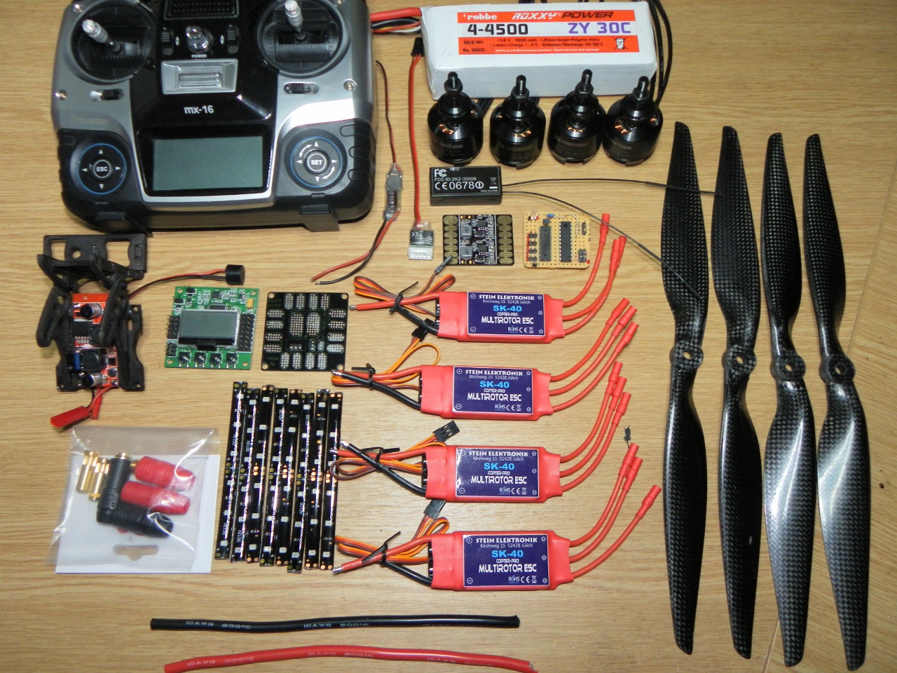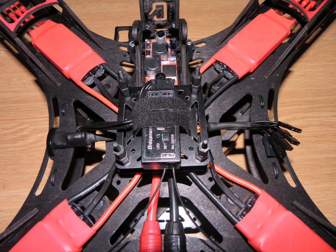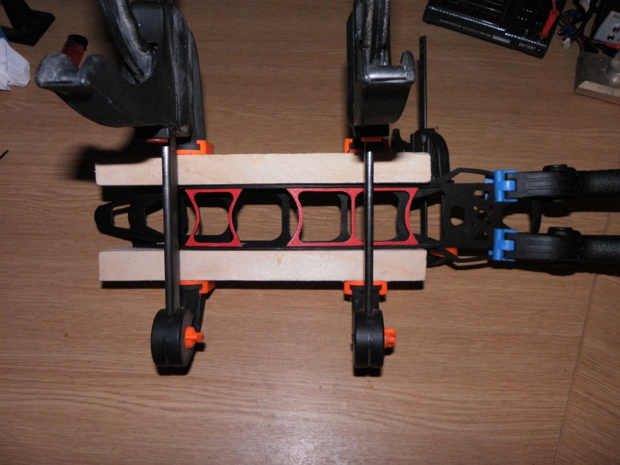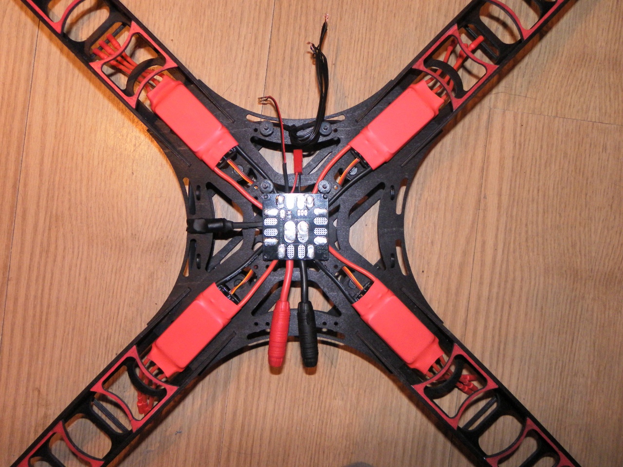Und alles zusammengesetzt. Die 4mm Kunststoffschrauben der Ausleger