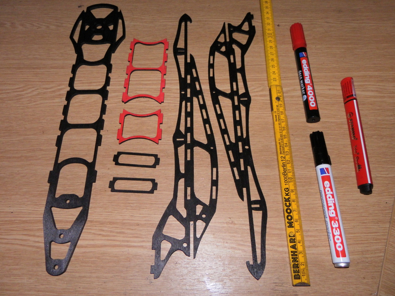 Aus lasergeschnittenen 3mm Birkensperrholz. Sehr passgenau und perfektem