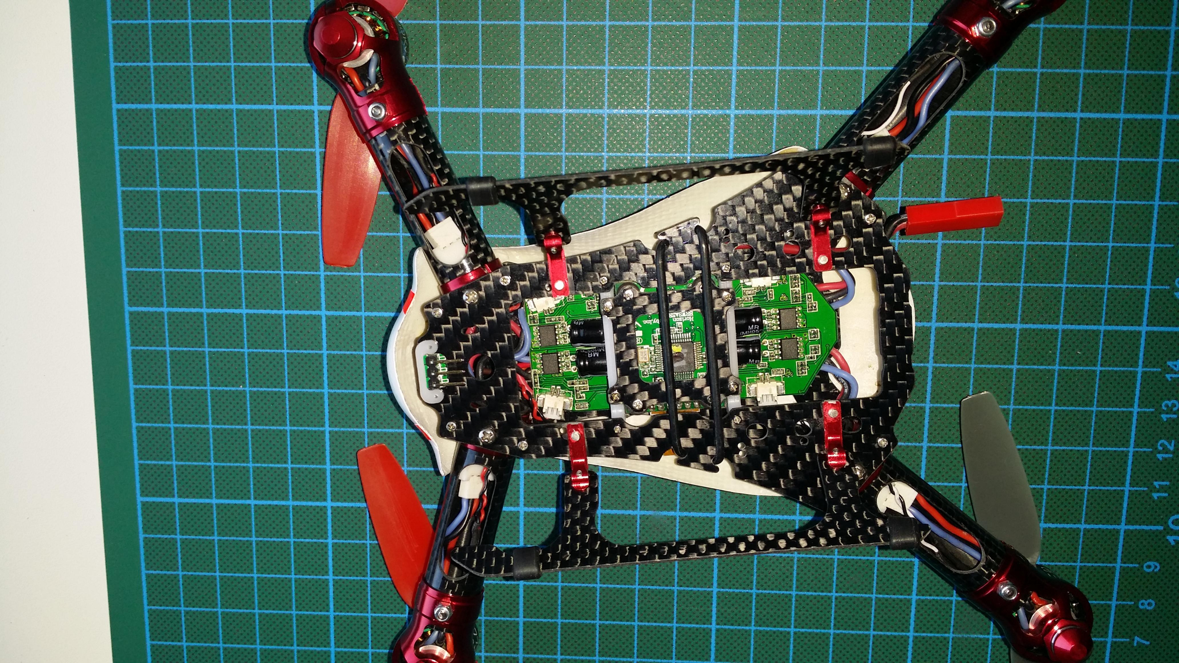 Ich habe das Teil nun NOCHMAL zerlegt und mir angeschaut, ob die FC richtig gerade sitzt. Tut sie, soweit man das mit den Augen beurteilen kann. Es bleibt also merkwürdig, warum das Teil nach vorne fliegt. Da ich keine Initialisierungsphase der Gyros ausmachen kann (man kann das Teil stellen, beim Akku einsetzen und beim Armen und trotzdem fliegt er gleich), muss das ja fest einprogrammiert sein. Kann das sein?! Dann haben die das natürlich auf den Plastikframe abgestimmt und vielleicht saß die FC der 1/2 Grad anders drin.