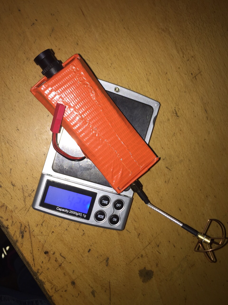Für den 200QX haben wir eine "FPV-Box" gebaut (Fatshark 600TVL Cam, 25mW Sender, Cloverleaf Antenne, 350maAh Akku).