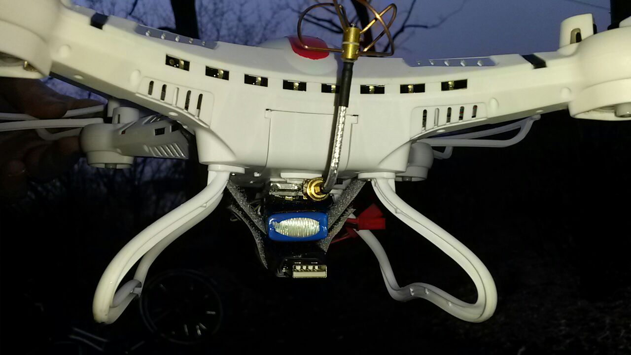 Den H8C haben wir heute auch mit einem FPV-System "ausgestattet" (600TVL Mini Pinhole Camera mit etwas weniger Weitwinkel, 25mW Sender, 200mAh Akku, Cloverleaf Antenne, sogar mit einer gestrippten "HD USB Camera").