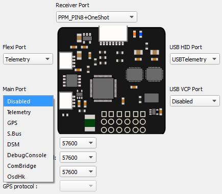 Jetzt dachte ich mir gerade ... vielleicht kann ich am MainPort anstelle SBUS auf PPM umstellen und kann so komplett auf das ReceiverPort-Kabel verzichten, doch leider kann man da kein PPM einstellen. :dknow: