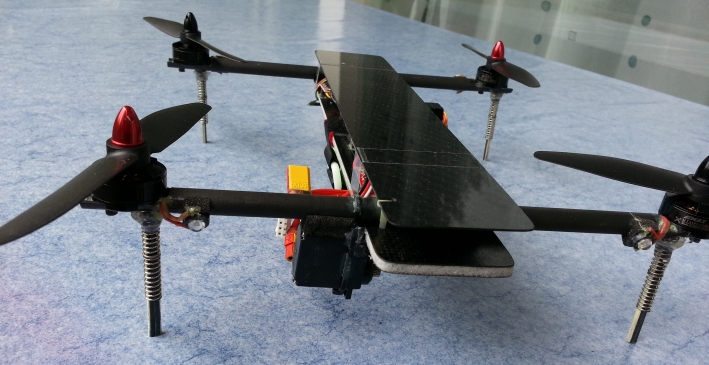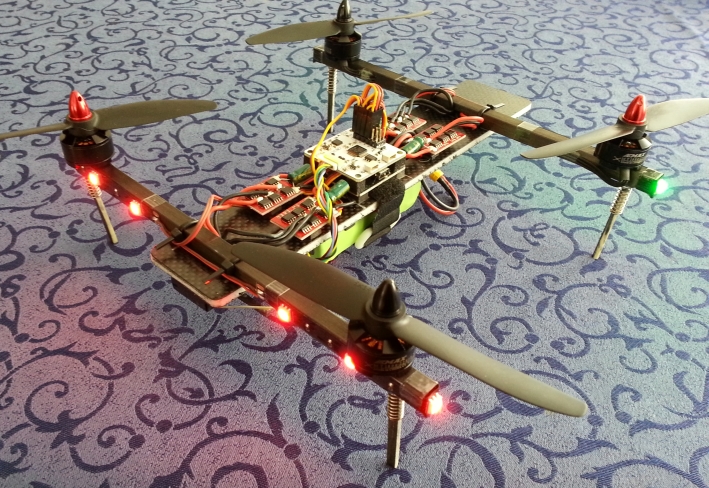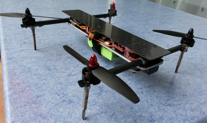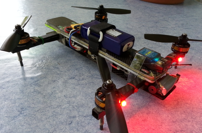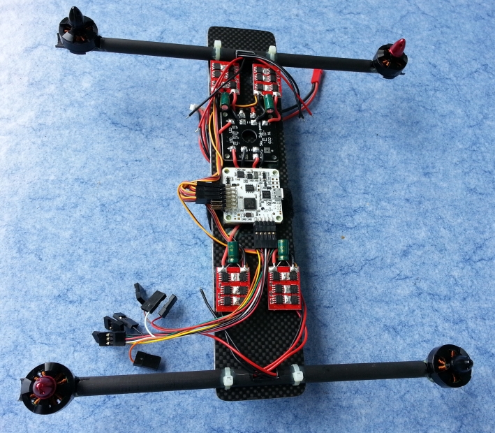 Im Bild 3 kann man den kompletten Aufbau mit Emax 1804 Motoren, Emax 12A