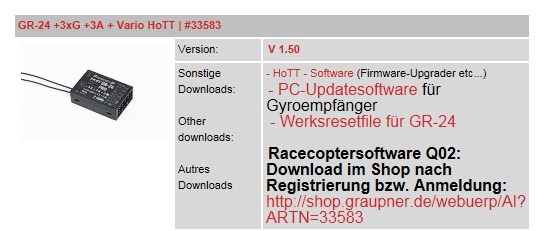 Ich möchte mir nun auch einen kleinen Racequad 250er größe zulegen, da ich graupner habe würde ich den den hott empfänger damit verwenden... meine frage