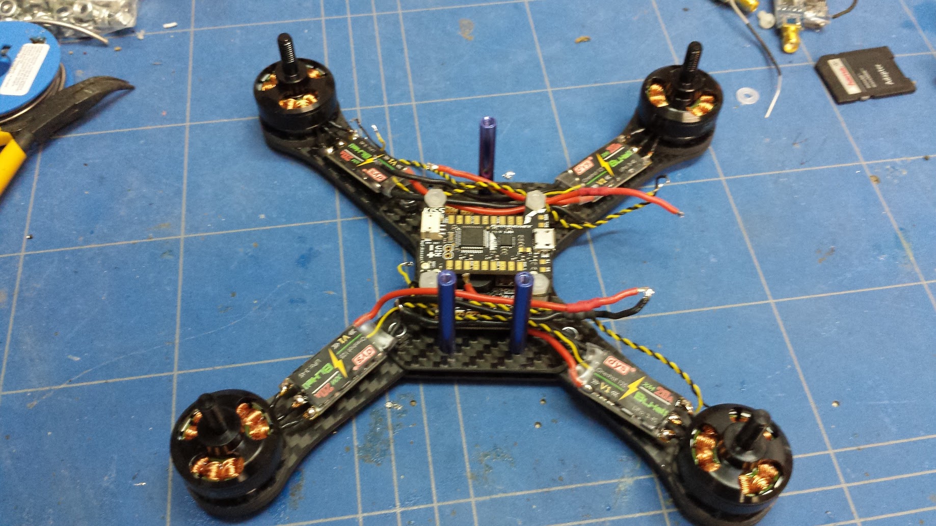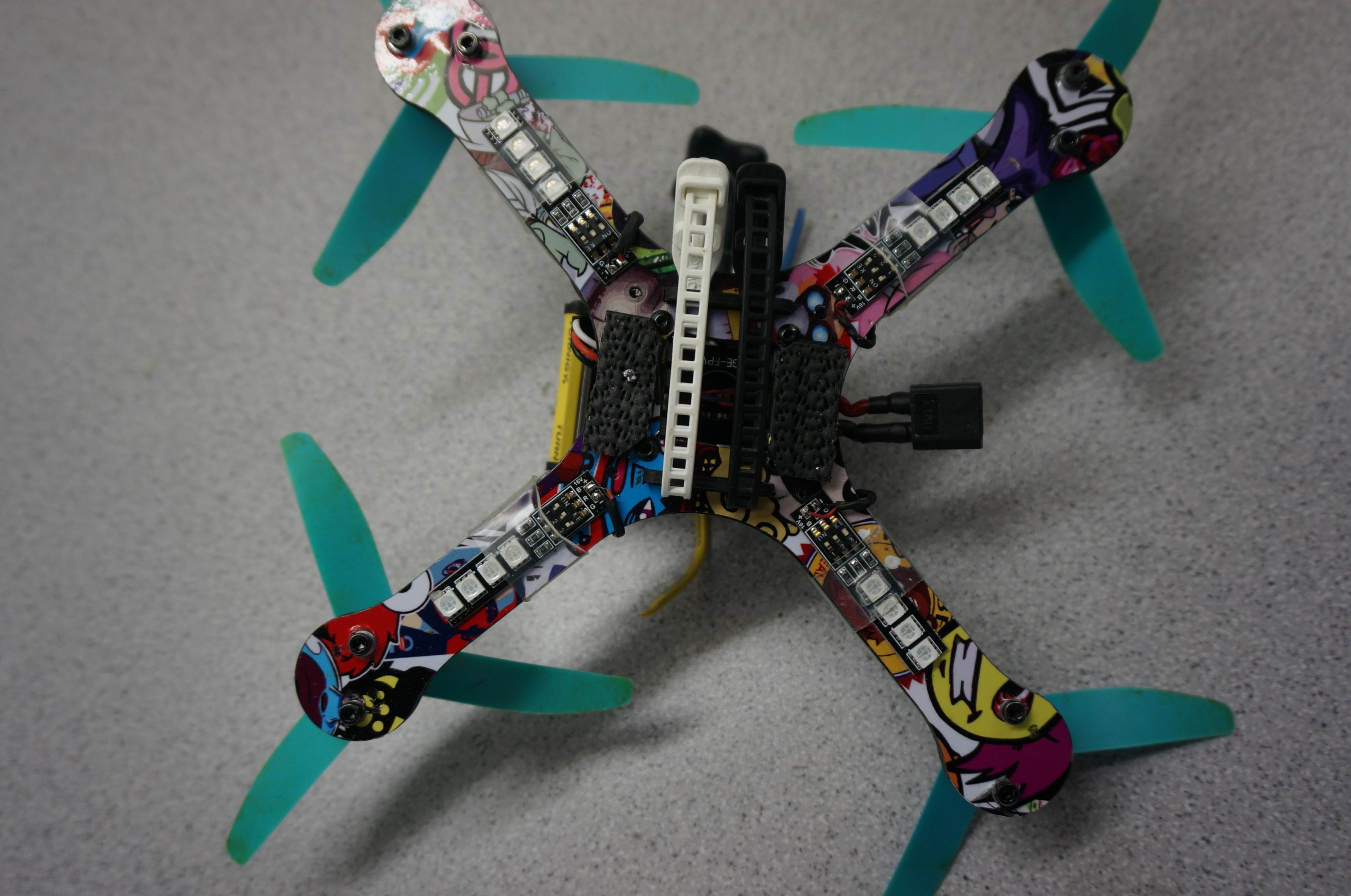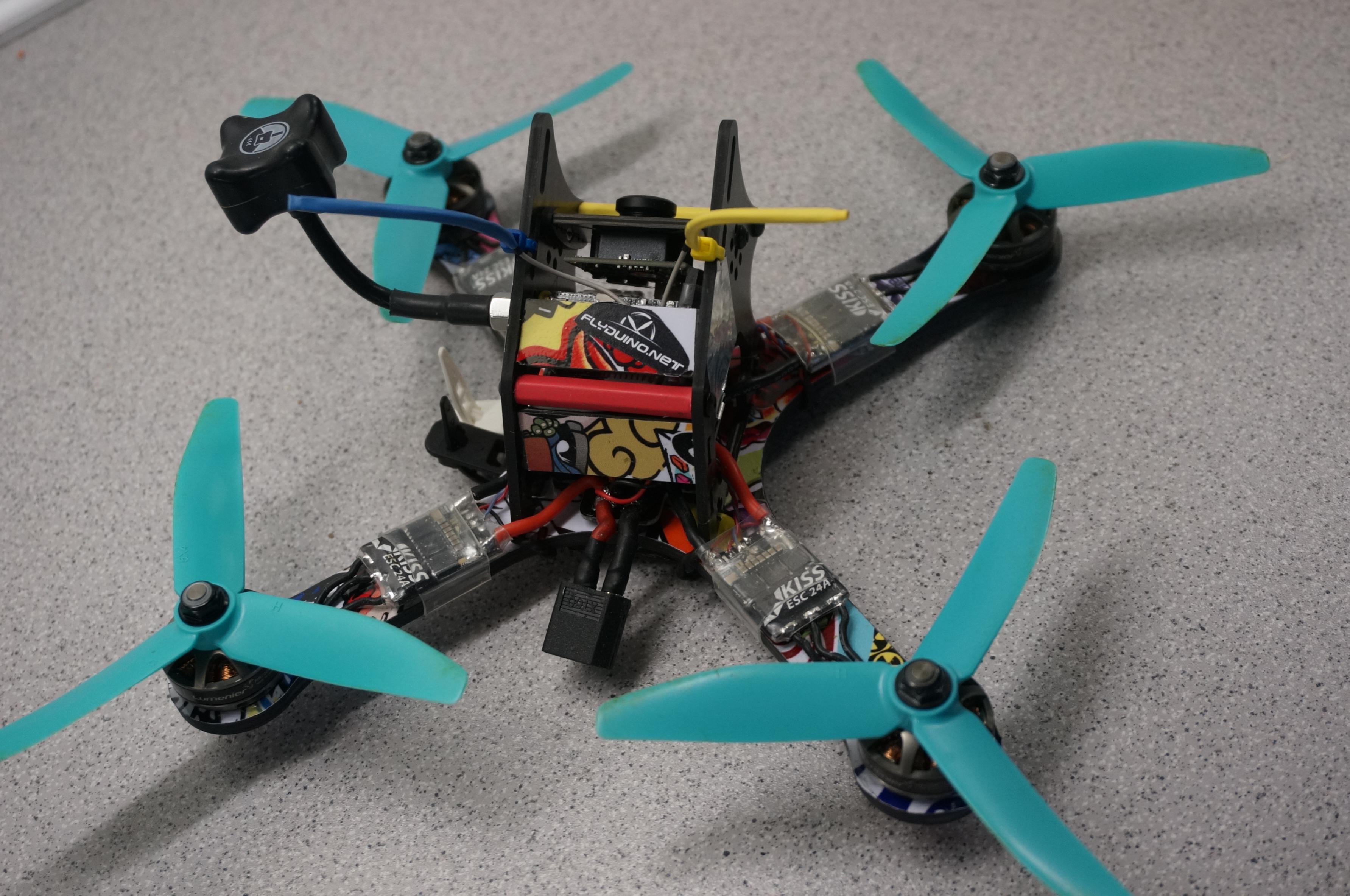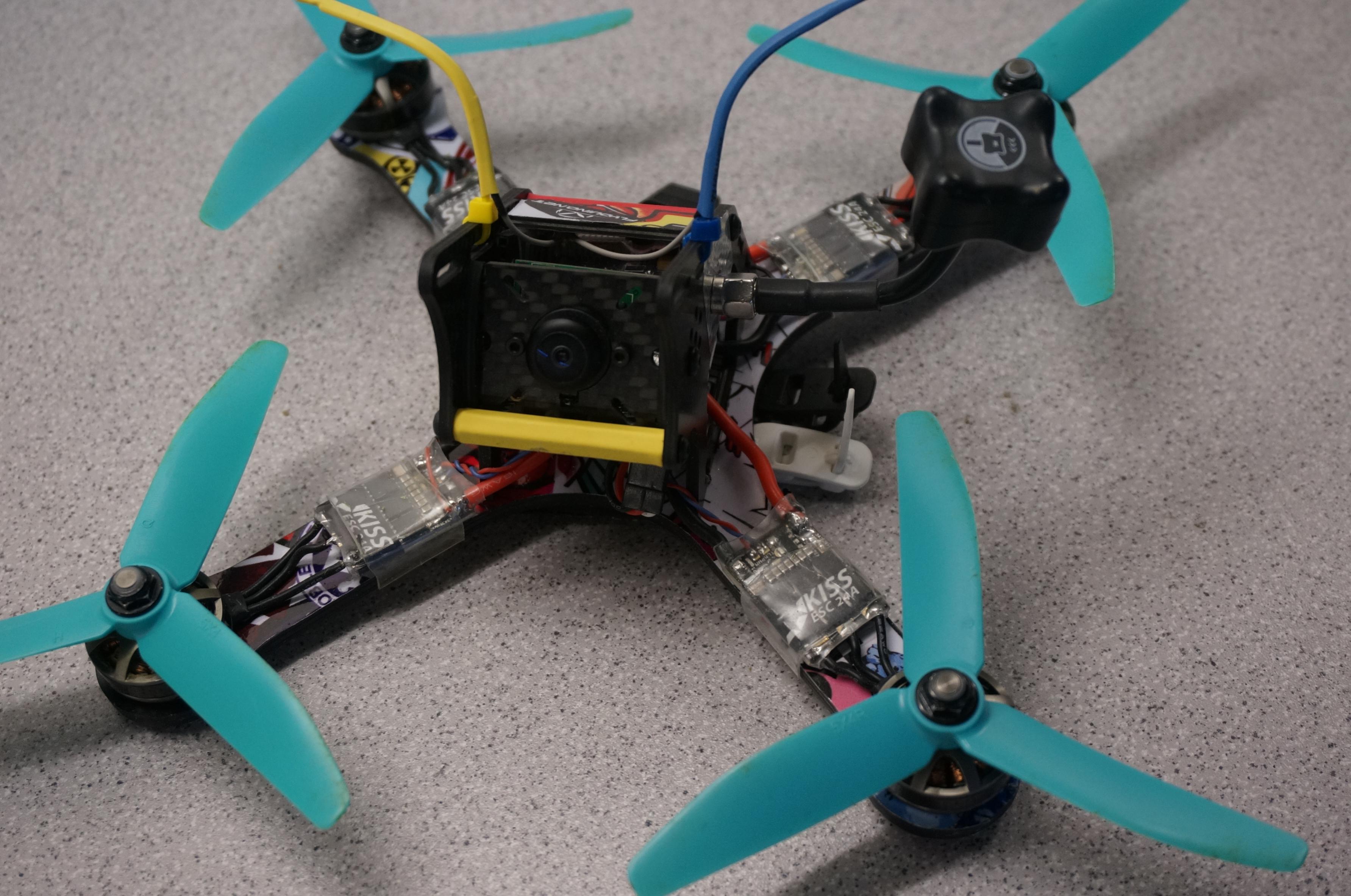 ausgestattet issr mit KISS FC /KISS24/Lumenier 2204 2500KV /5x4x3 HQ/ OSD und nem 25mw VTX und ner PZ cam