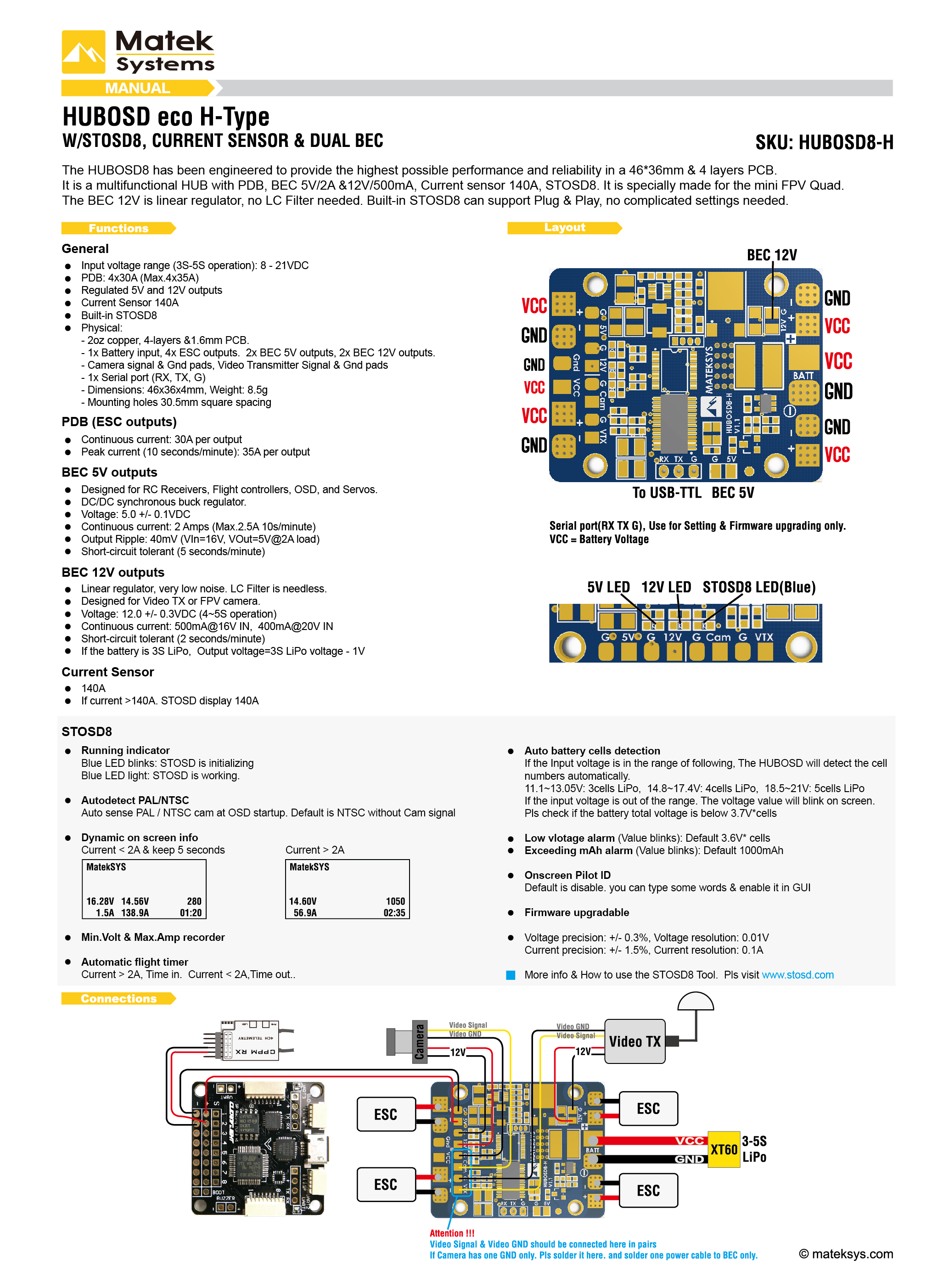Weil der HV ein eigenes BEC hat und NICHT durch ein anderes gespeist werden soll.Zitat von Snake Beitrag anzeigen...was spricht dagegen, den Unify Pro HV am 12V-Ausgang des Matek-PDB's zu betreiben wenn er das OSD des Matek nutzen will?
