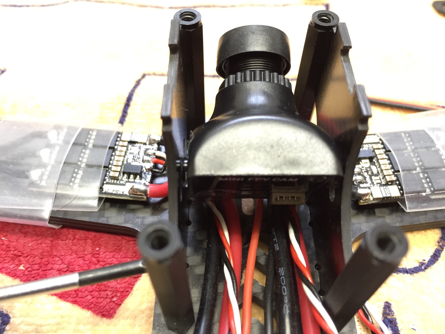 Die Löcher etwas höher machen ist kein Problen.Zitat von Snake Beitrag anzeigen...das ist unproblematisch. Man sollte die Kabel nur möglichst flach halten, um den Drehradius der FPV-Cam nicht einzuschränken.